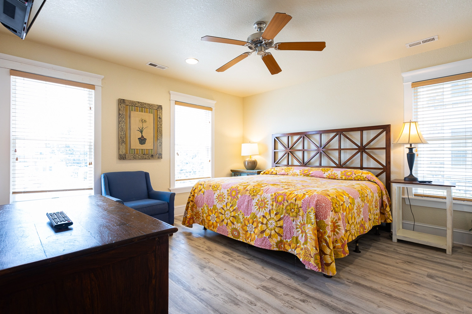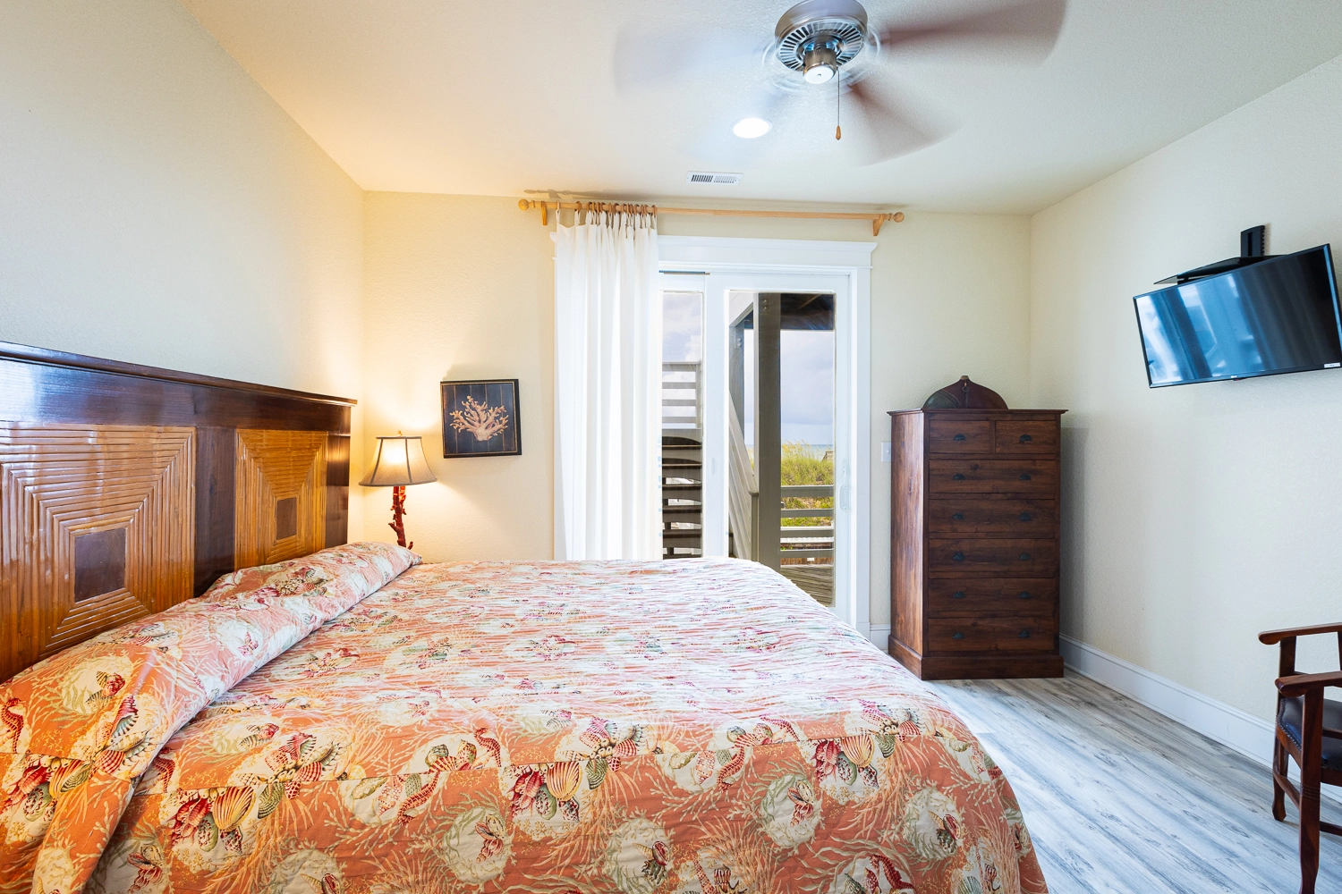 King, Semi-private bath, Standing shower, Deck access