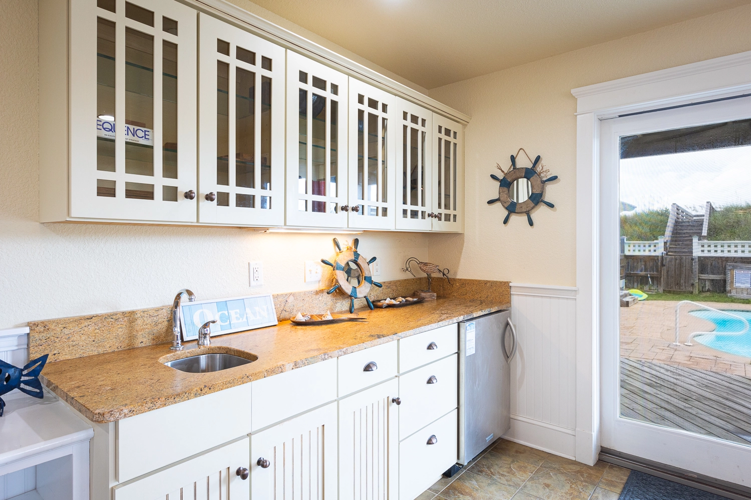 "The space and king rooms! Elevator so helpful when bringing in bags. Especially appreciated the alarm that goes off in case any small kids open to the door to the pool..The living room/kitchen area was perfect for everyone and the ocean view."