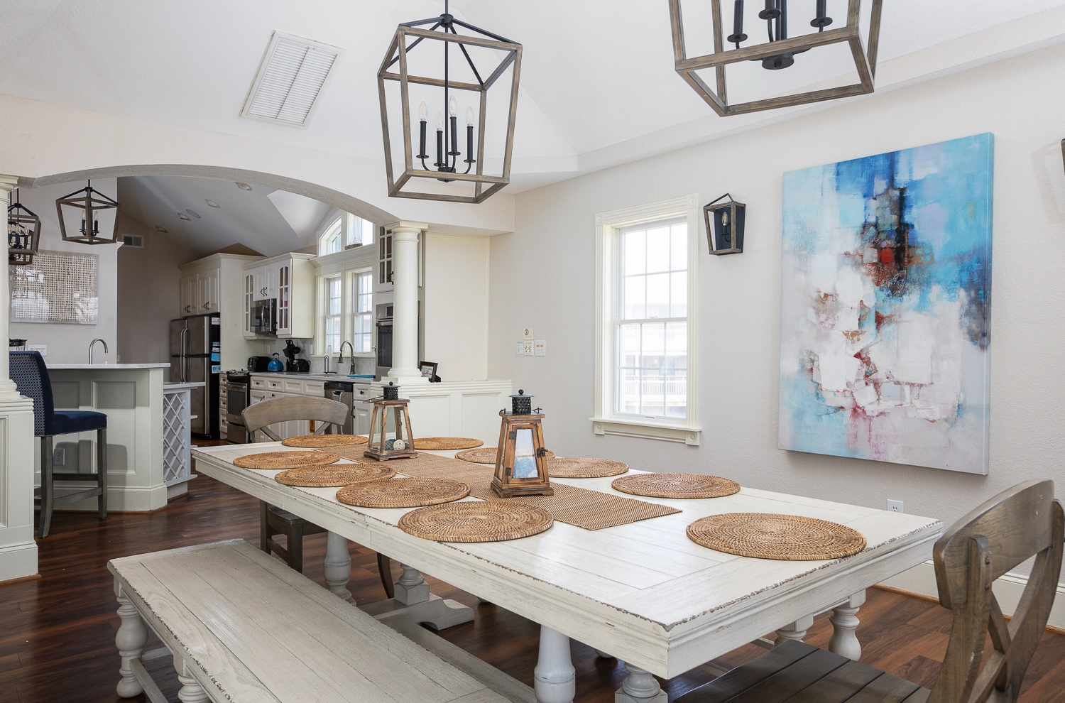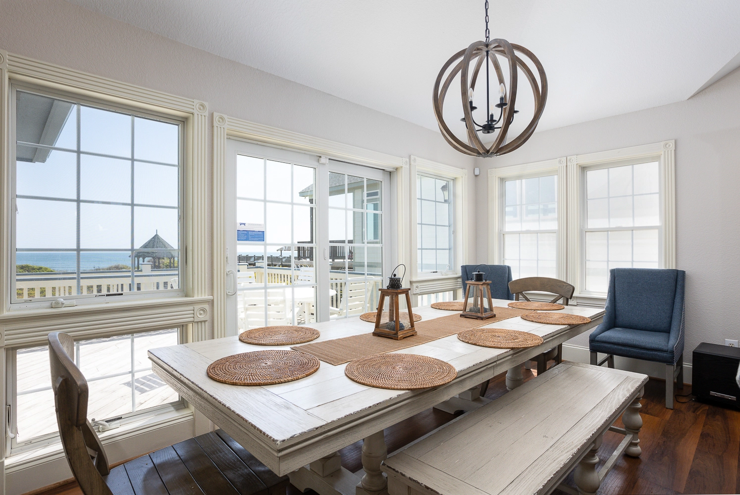 "Loved the Sunday to Sunday rental as it avoided a tremendous amount of traffic. The size and amount of King size beds to accommodate adults and the amount of sturdy bunks. Beach access and parking was great. House easily accommodated the needs of our family of 20–ages 7 to 77. Very much appreciated the beach setup of 2 umbrellas and chairs."