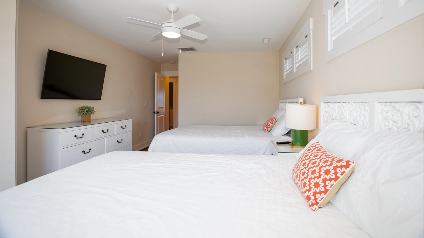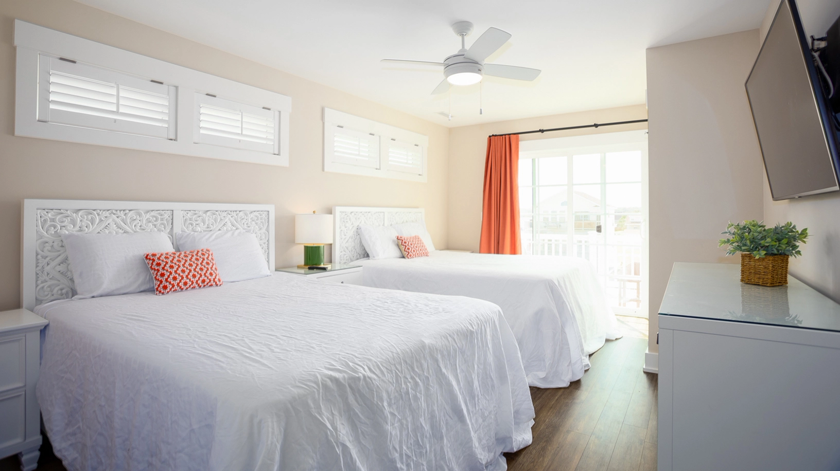 2 Queens, Standing shower, Deck access