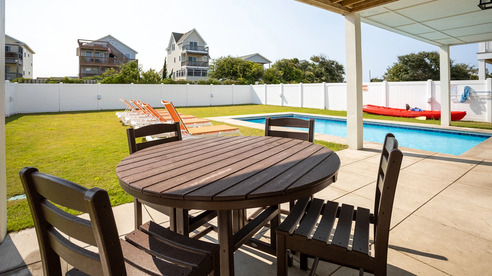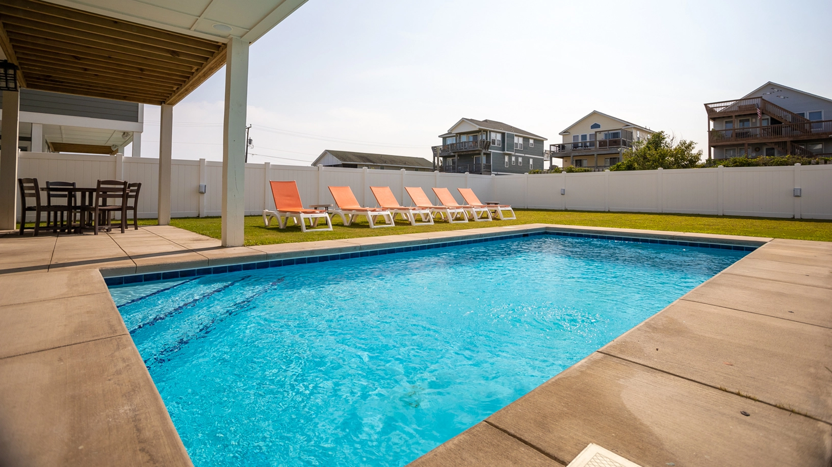 "This house was in the perfect location-- close to the beach, close to the Wright Brothers, close to shopping, but peaceful and quiet. We loved all the space, the huge kitchen, and the pool. There was plenty of room for 5 families."