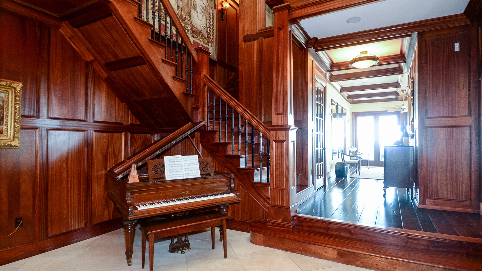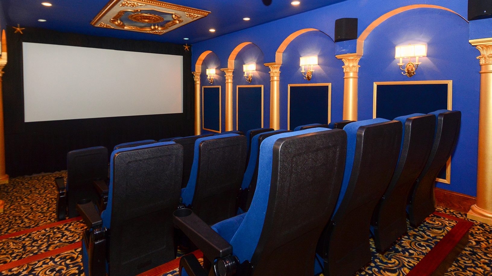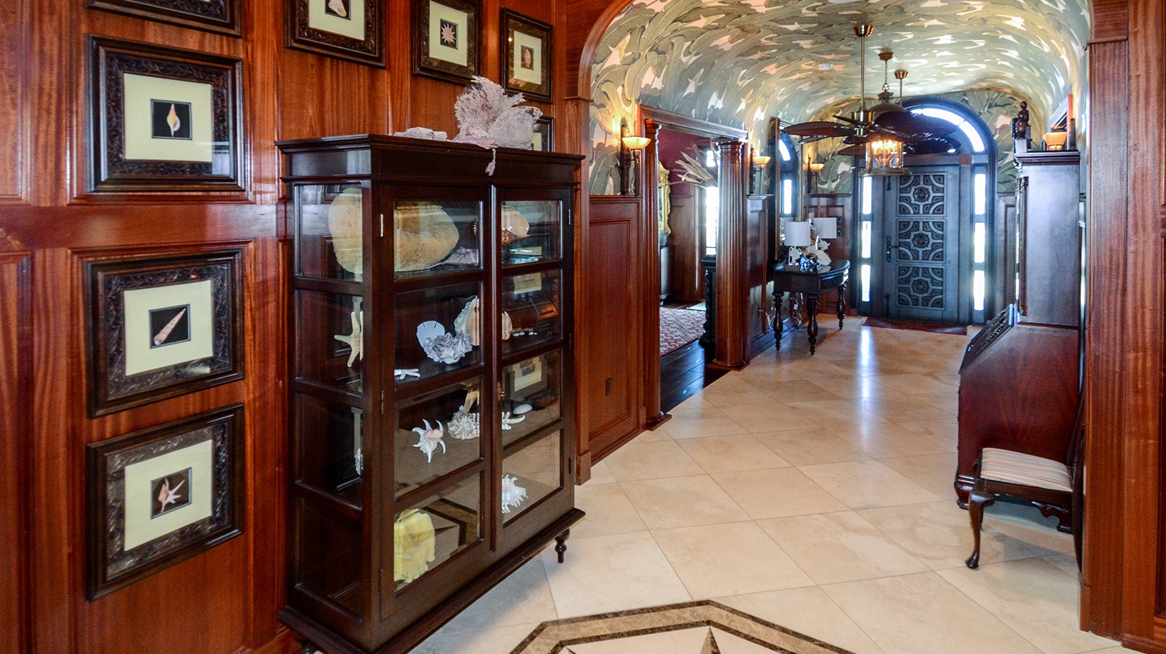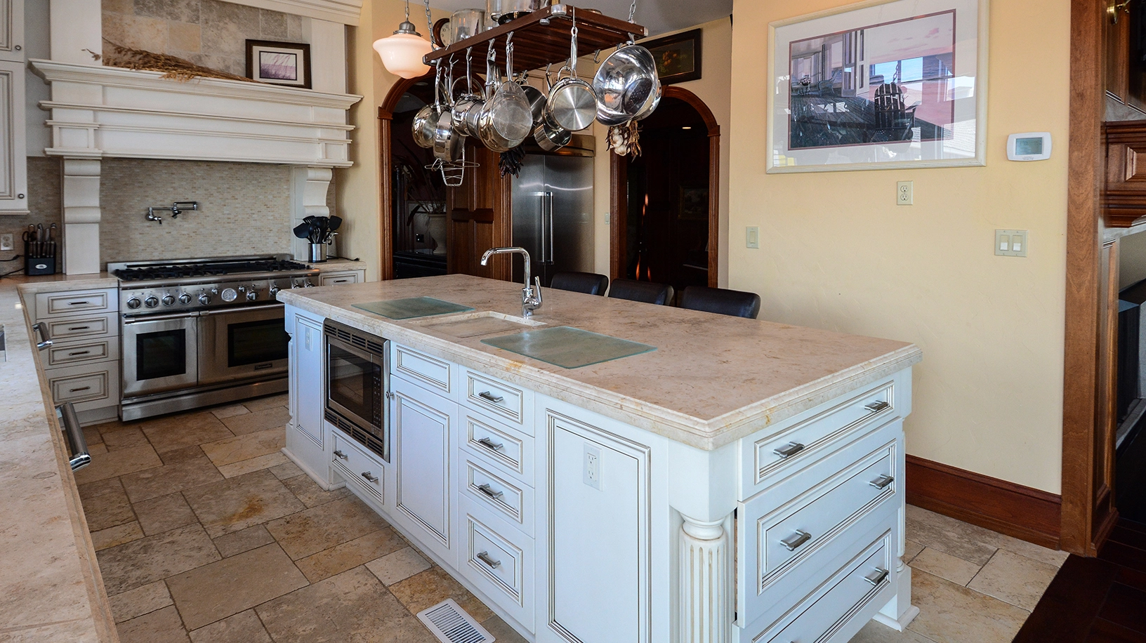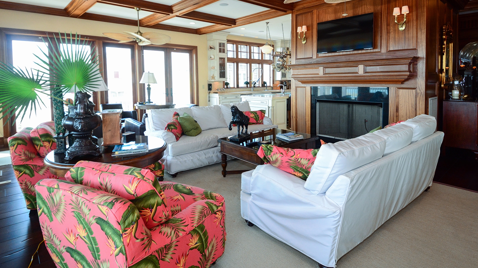 Great room; kitchen with two refrigerators, two dishwashers, two ovens, and commercial stove; dining area with gas fireplace; rec room with pool table, library and bar; theatre room with seating for 18.
