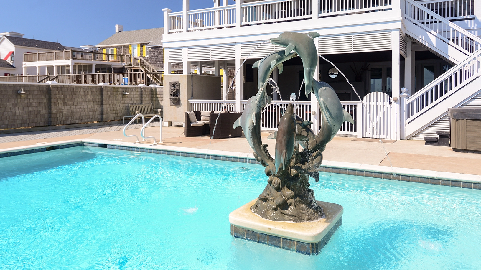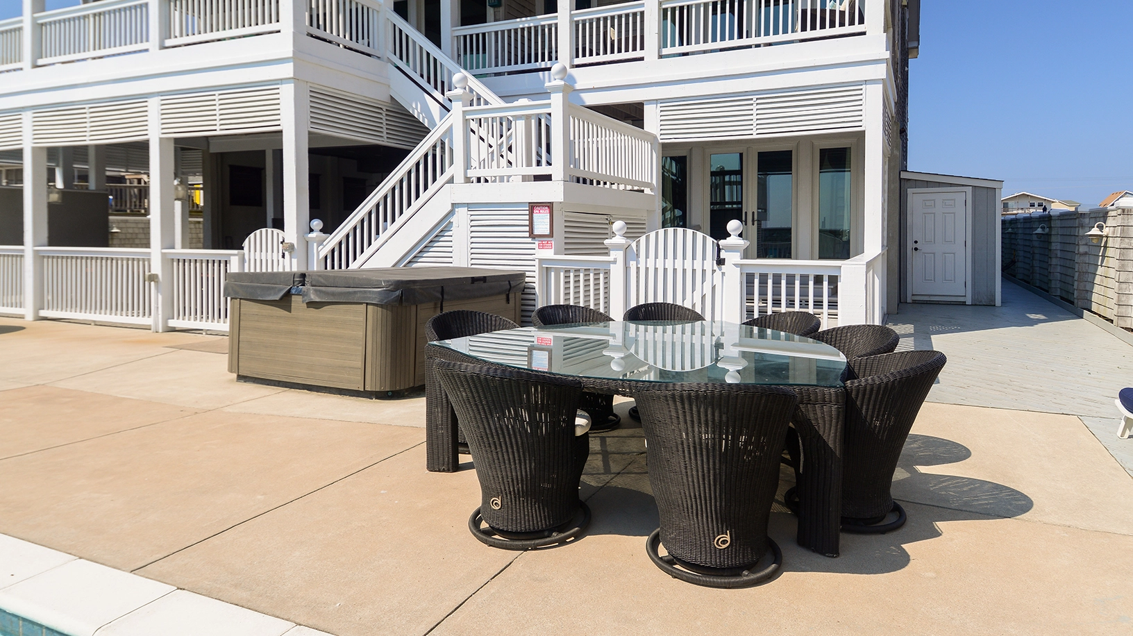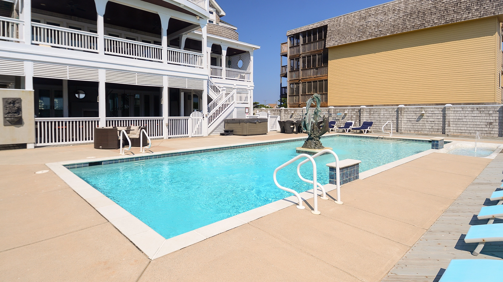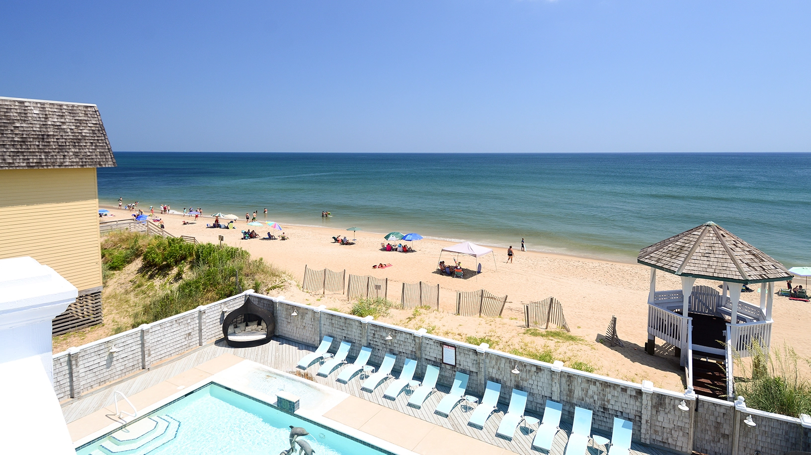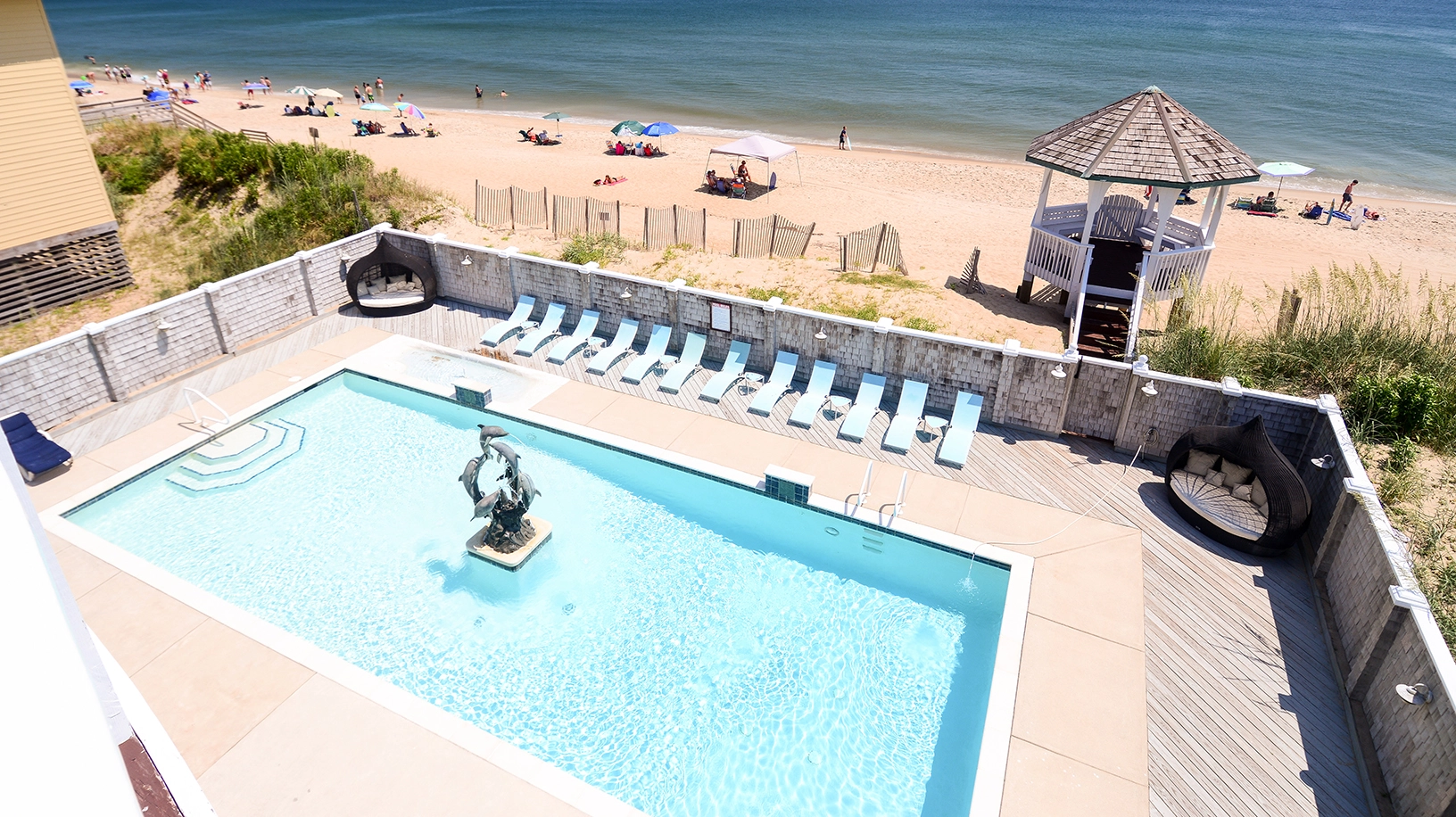 Private pool, hot tub, shallow area for kids, poolside cabana with wet bar, seating and dining table, multiple TVs/DVD, elevator, private beach access with dune deck.