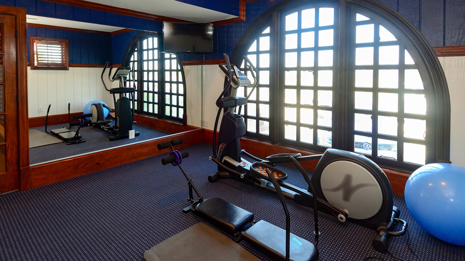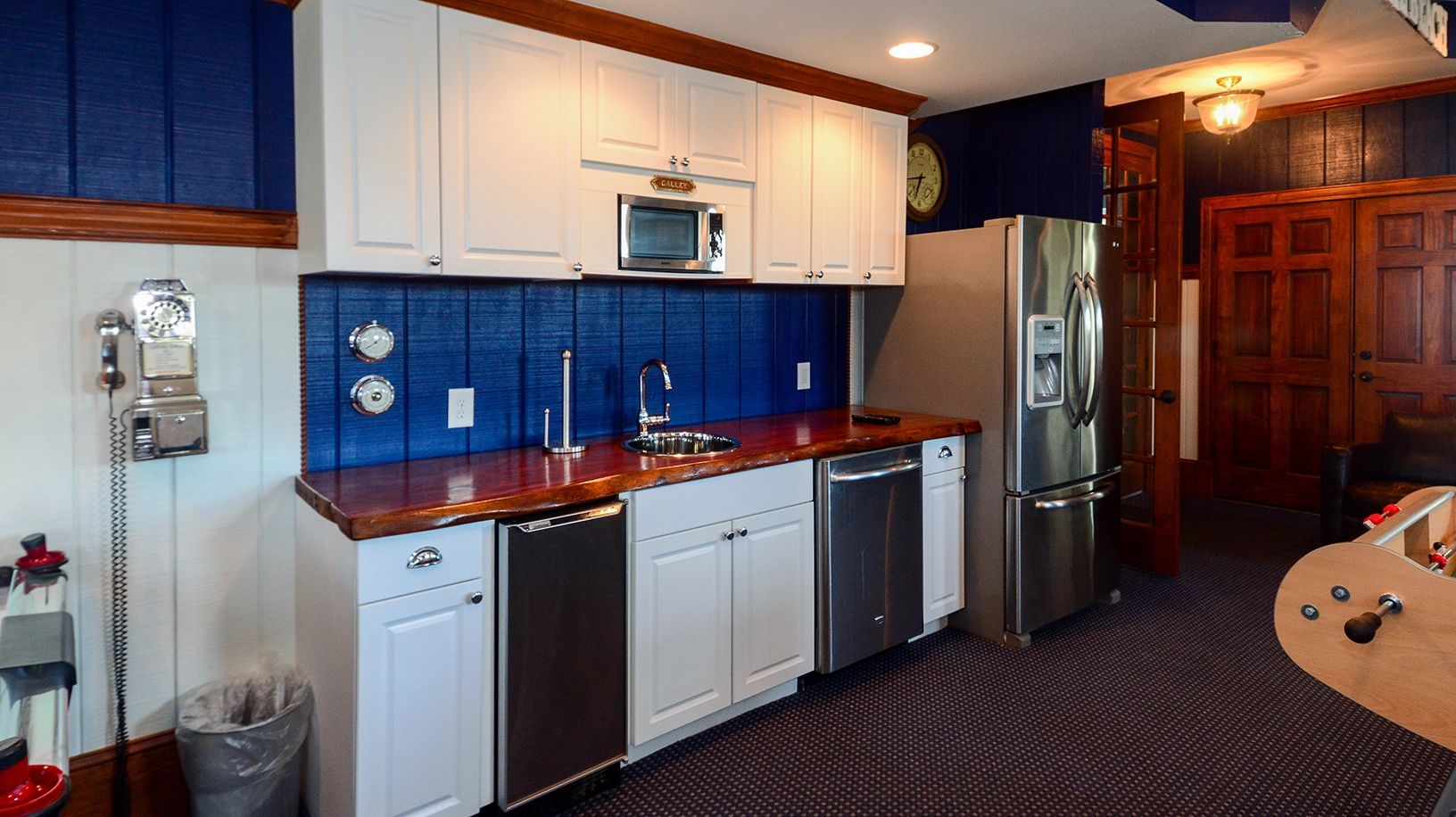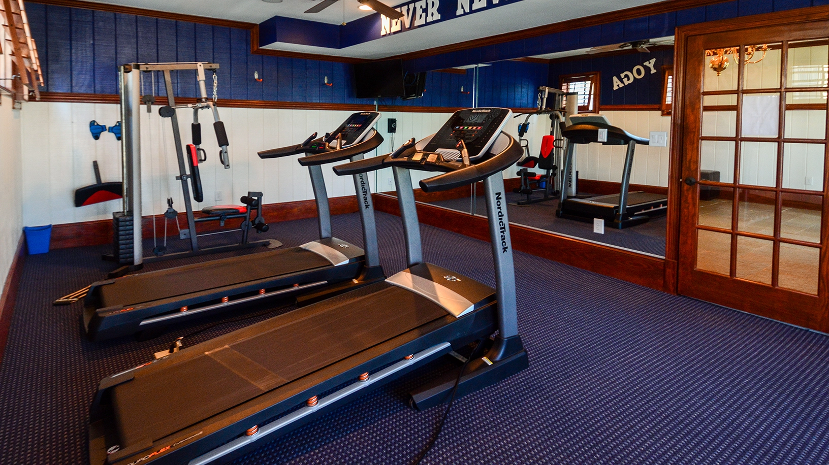 Rec room with pool table, ping pong, air hockey, foosball; shuffleboard, skeeball, and kitchenette with full-size refrigerator and dishwasher; exercise room; laundry.