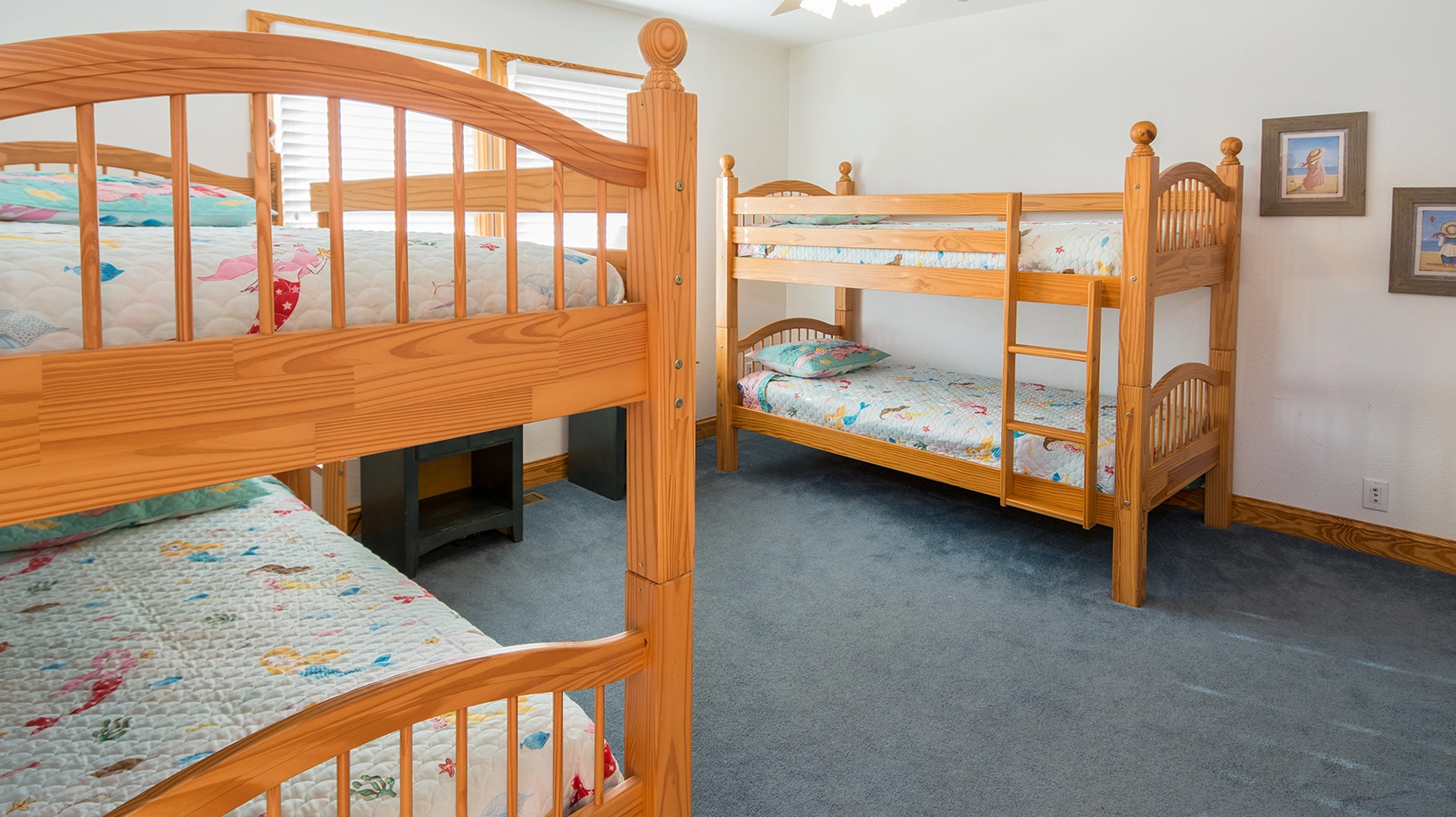 "Lovely beach house with tons of space! Love the top floor views and huge pool! The ice machine was a wonderful surprise and convenience. Having the bunk rooms on the middle floor is much safer for young children. We plan to come back here again. Only negative was the narrow driveway and most of the beds were very hard."