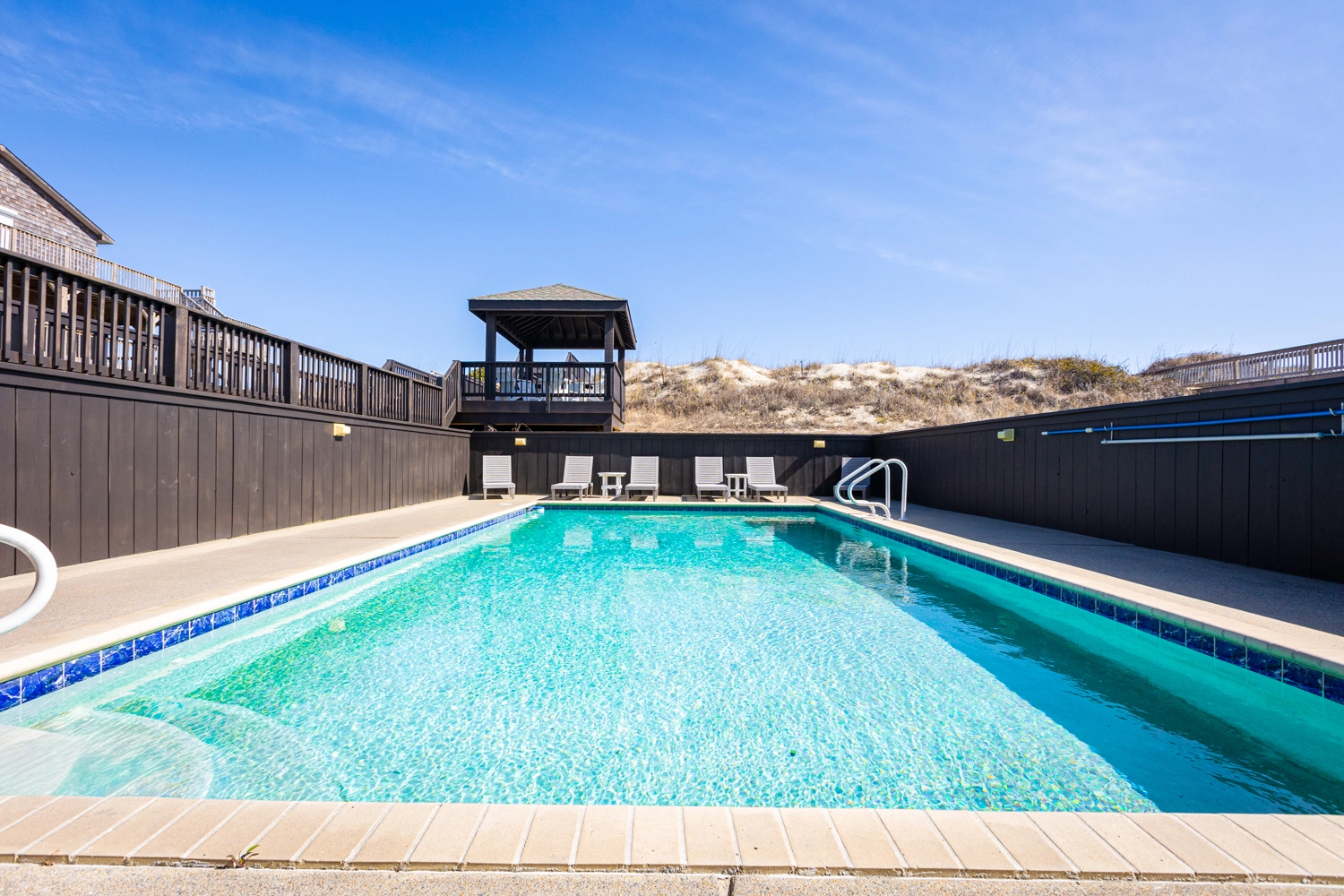 "This home was beautiful and satisfied all our needs, it was a great walk to the beach. The outdoor area with the hot tub, the pool, and the decking all around it to the gazebo to the beach was spacious."