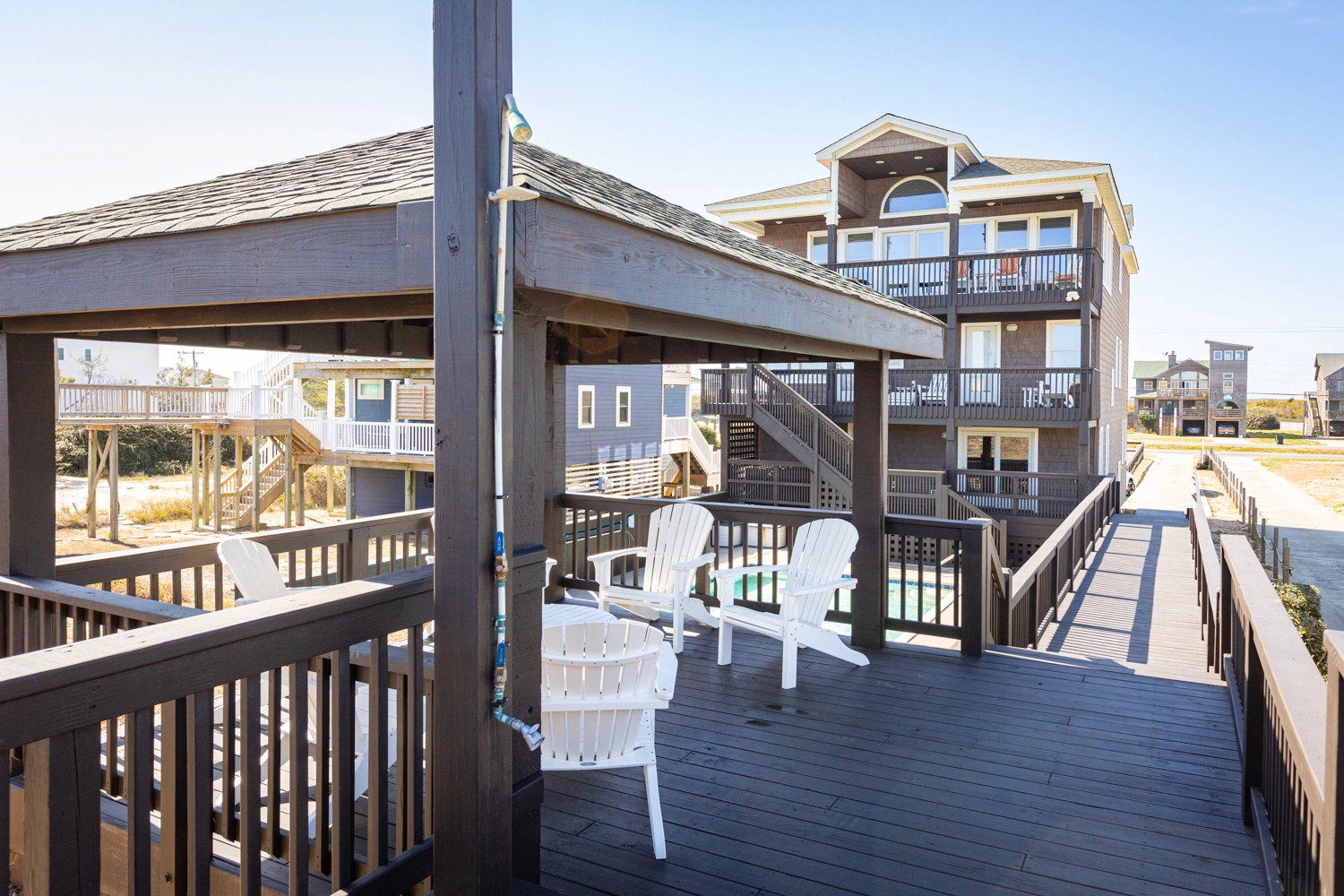 "location 3rd level porch/pool/covered deck and walkway to beach."