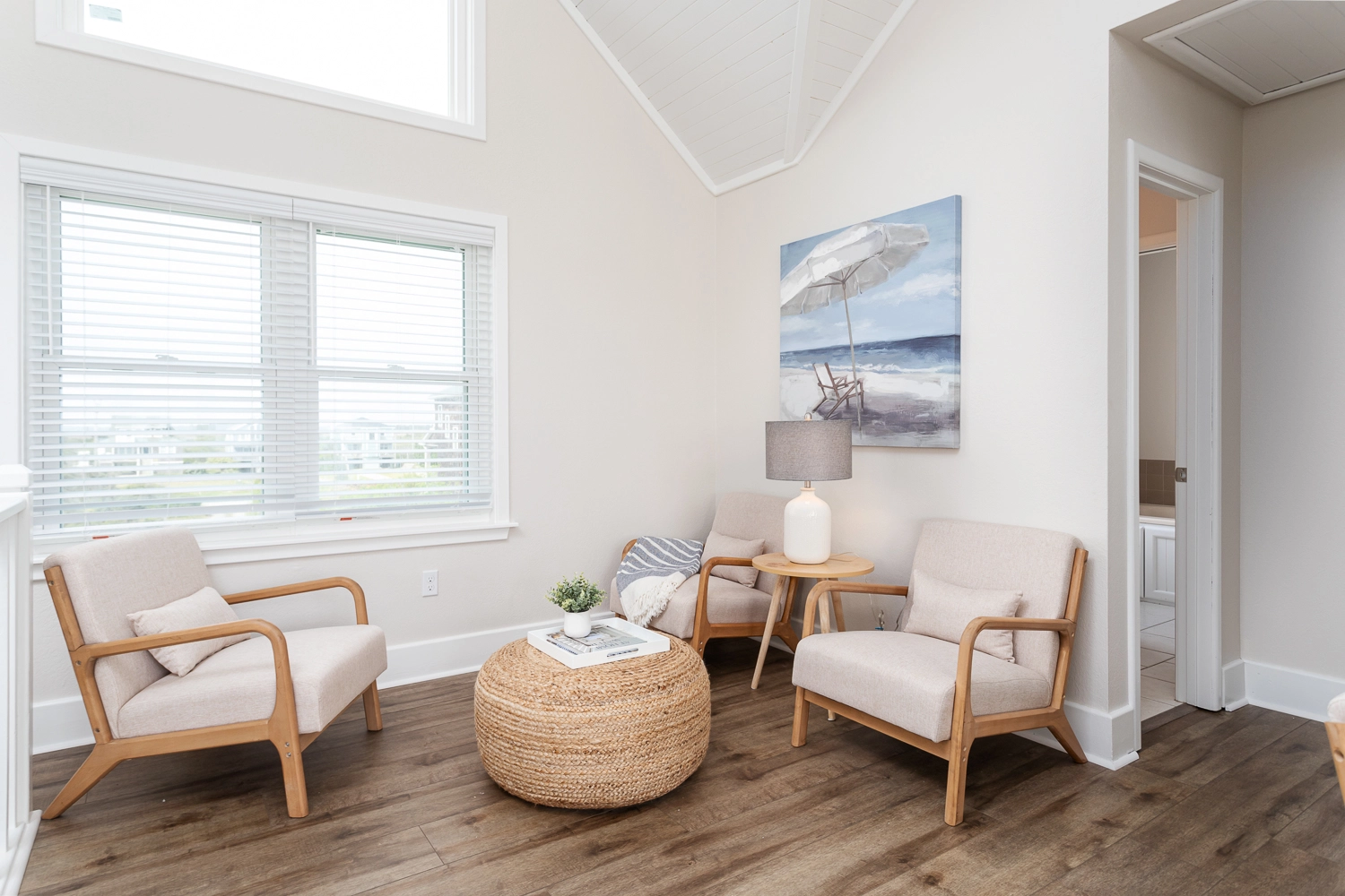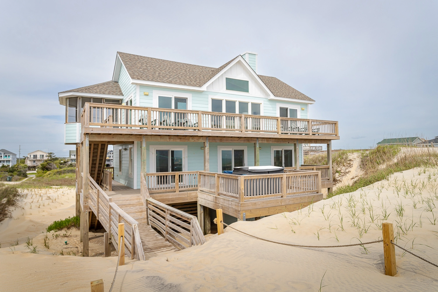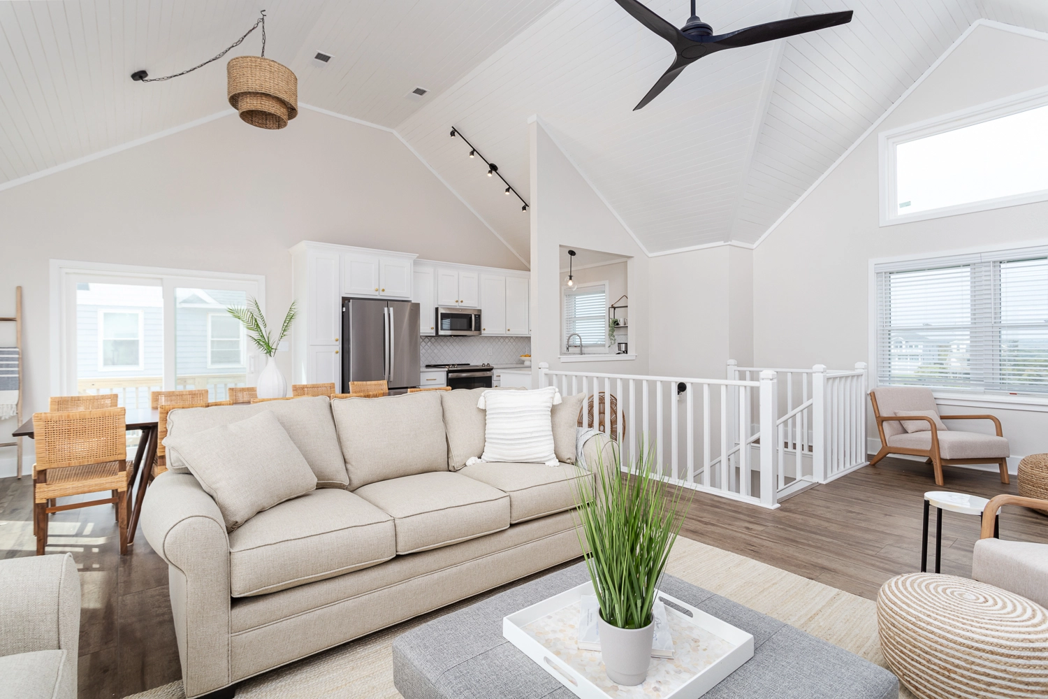 "We love the view from the living room. You can see over the dunes to the beach and the water line. We love the furnishings. The chairs on the deck are high quality and plentiful. The living room furniture is very nice, and the dining table is long and sturdy. The kitchen is sufficient for all the needs we have."
