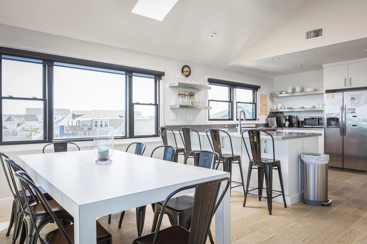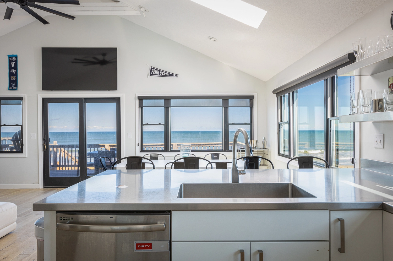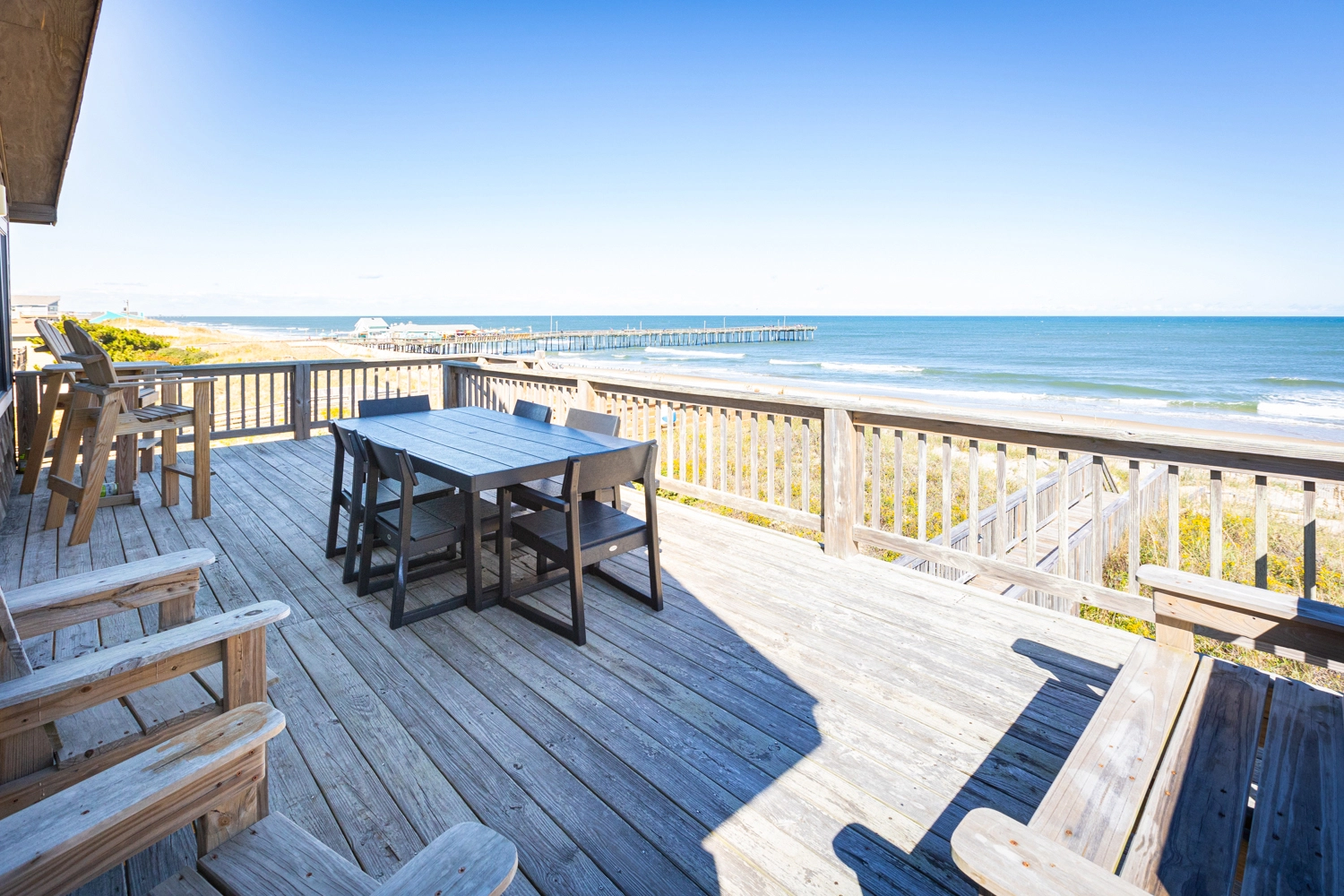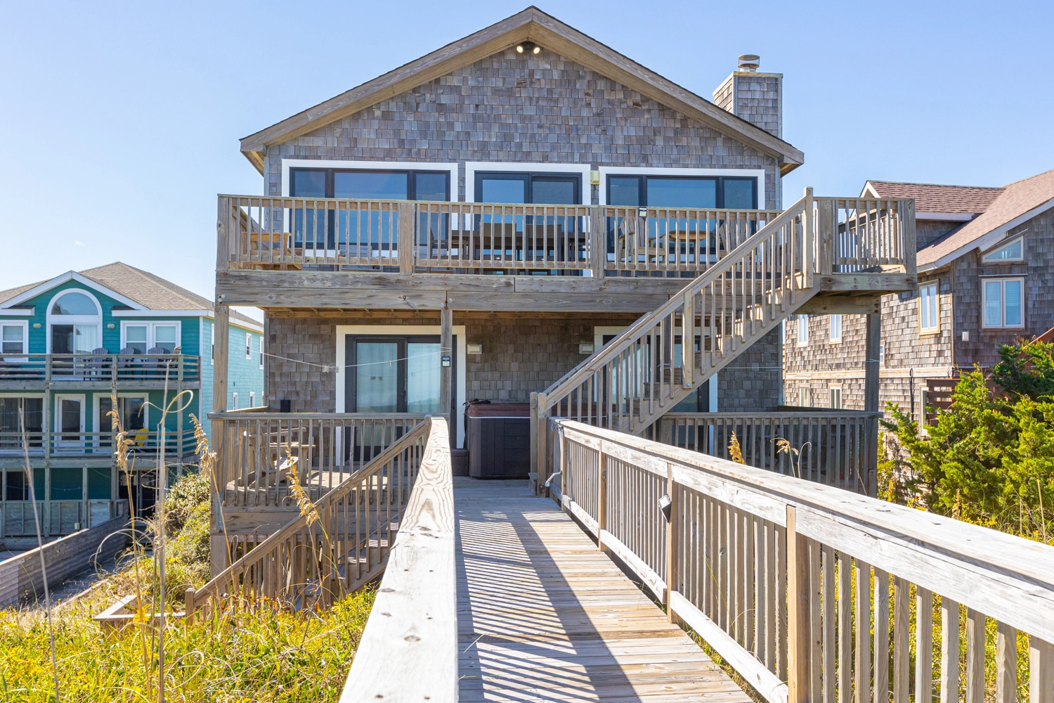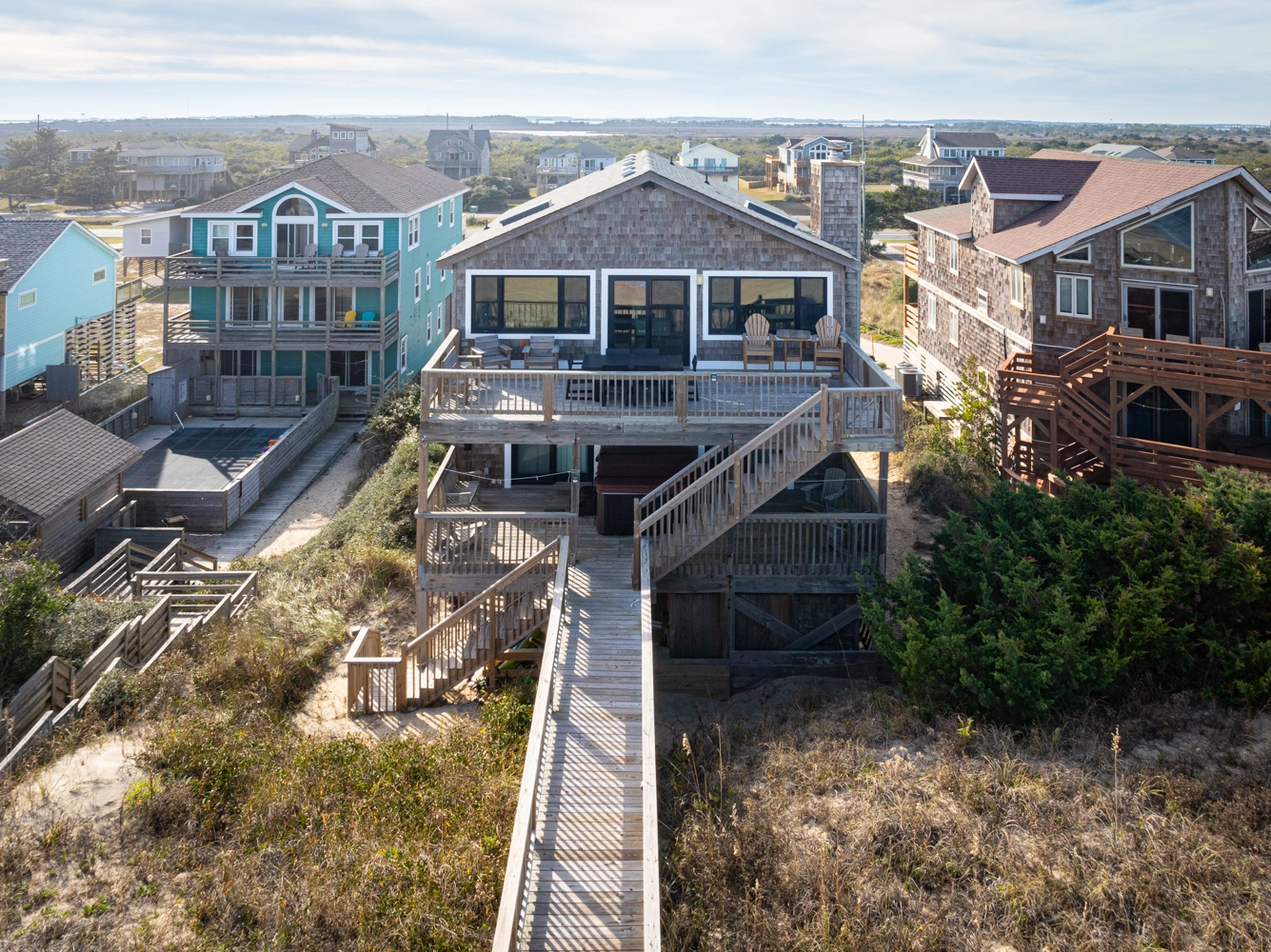 "The walkway to the beach was the best! Easy for my 80 year old parents and my young kids. Open, modern great room with a large dining table + another out on the upper deck. The large bunk rooms made a great stay for the kids and it was a kid-friendly house. We would rent this house again! Absolutely loved the views and space!"