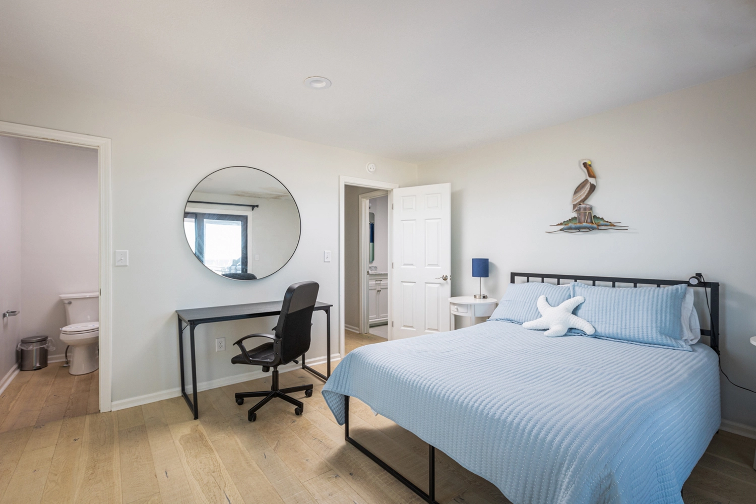 Queen, Half bath, Deck access