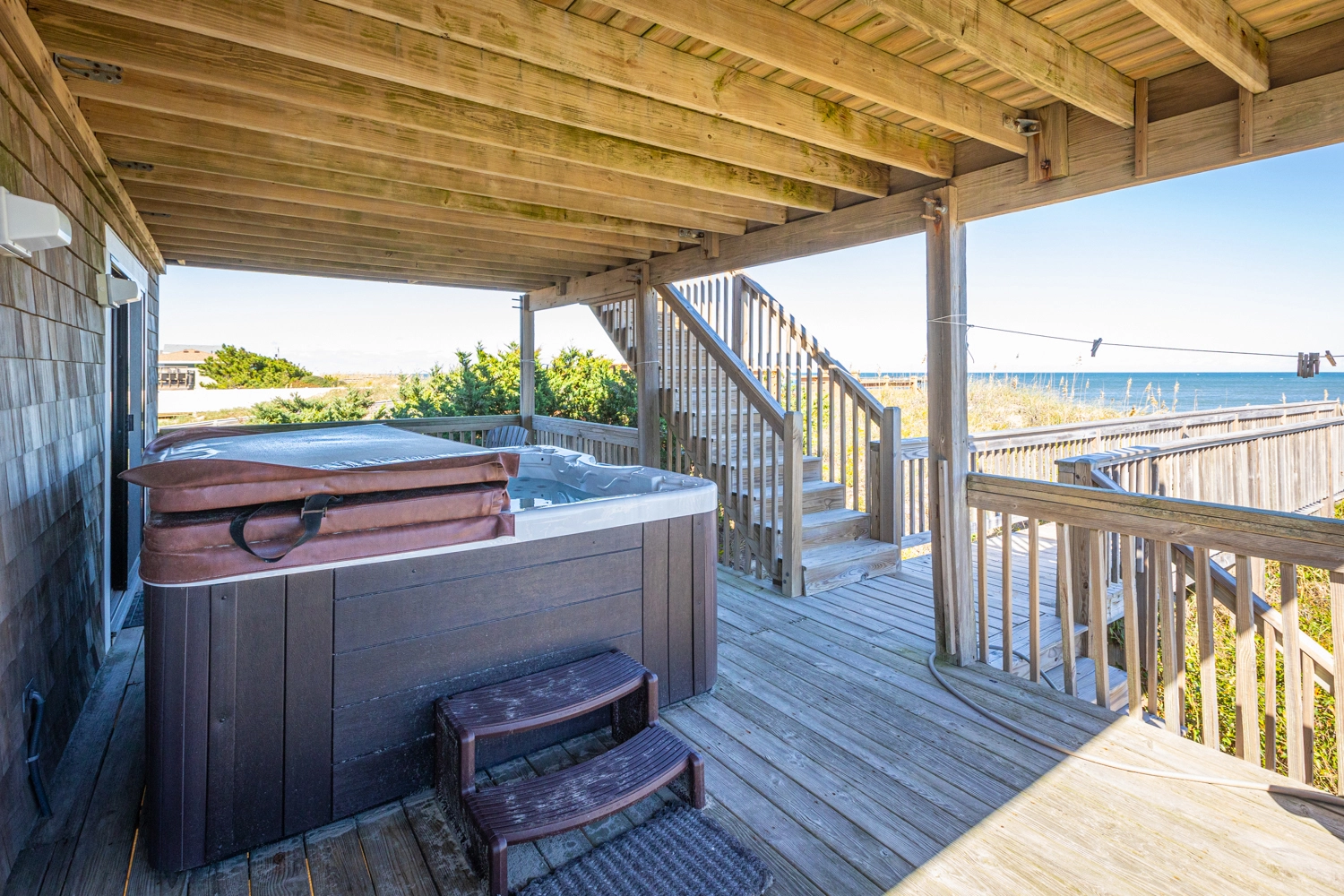 "Convenience walk to beach. Beautiful view of beach and ocean. Kitchen well stocked with pots, pans, utensils, keurig, air fryer etc Nugget ice machine was a huge hit. JBL speaker was great to use. Hot tub was nice to use."