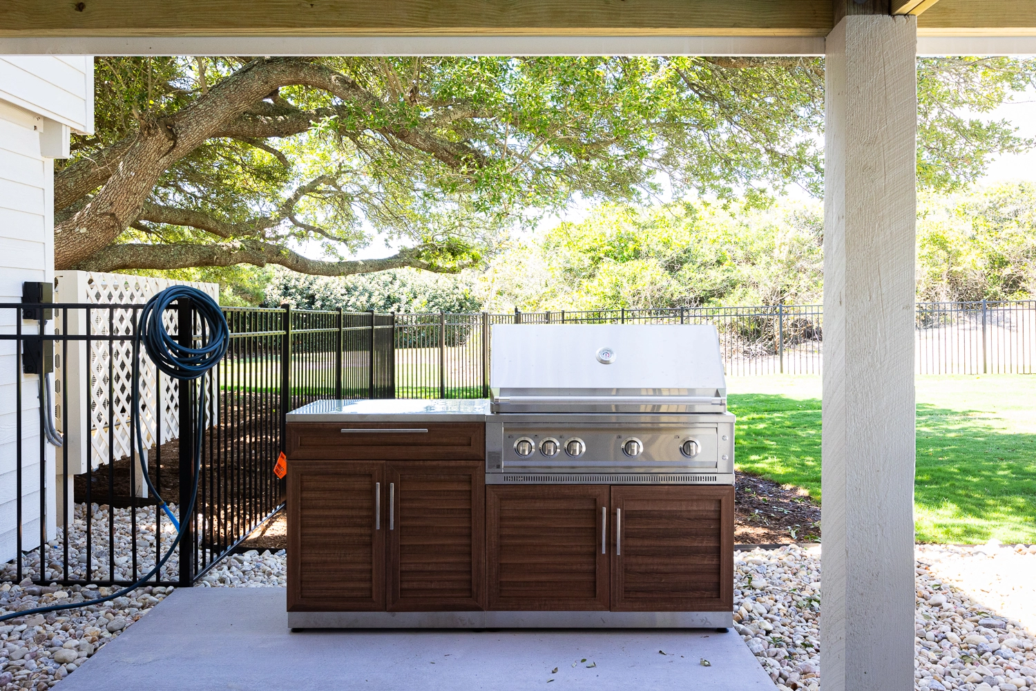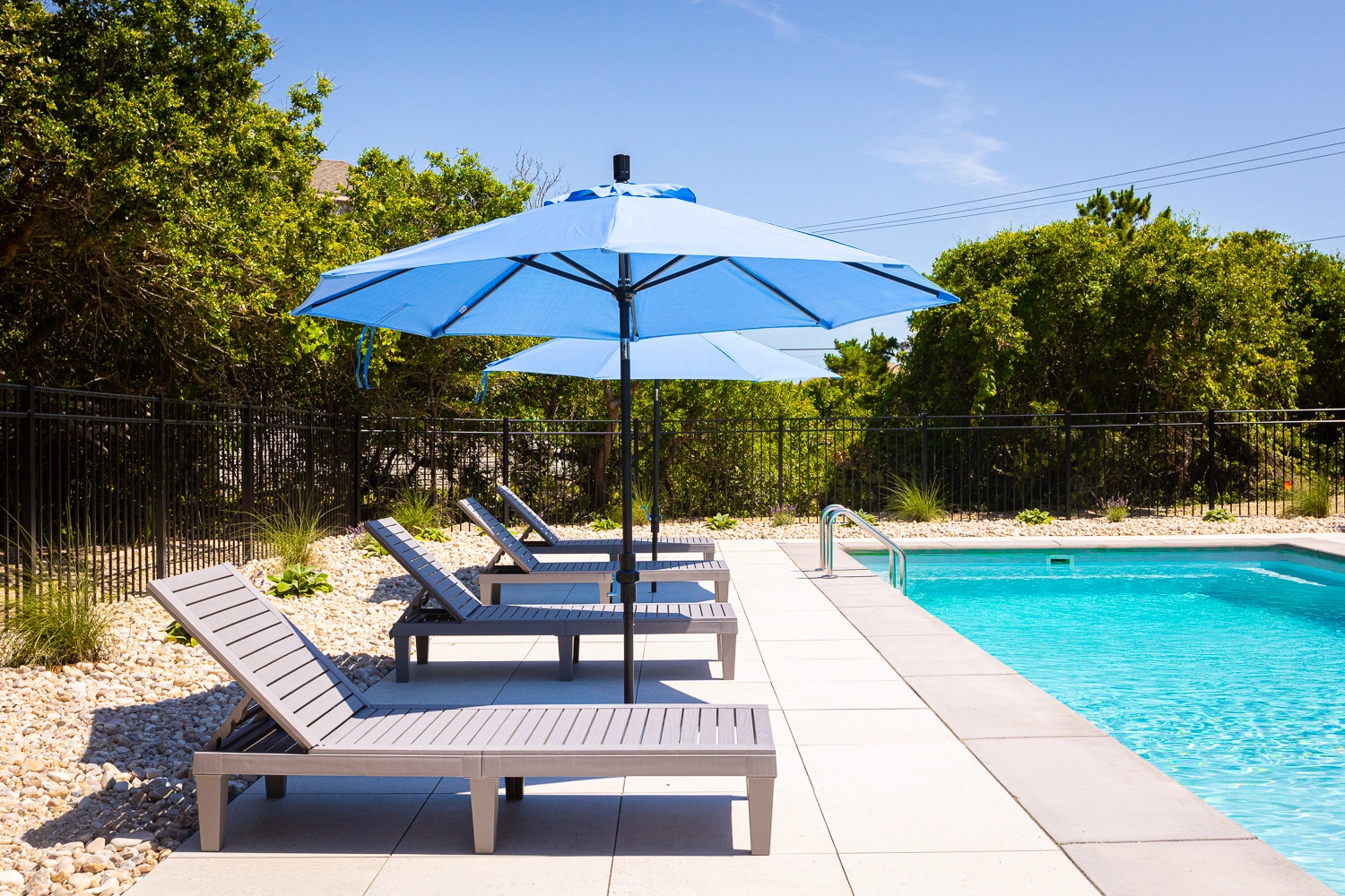 Private pool with tanning ledge, gas grill, and outdoor TV.