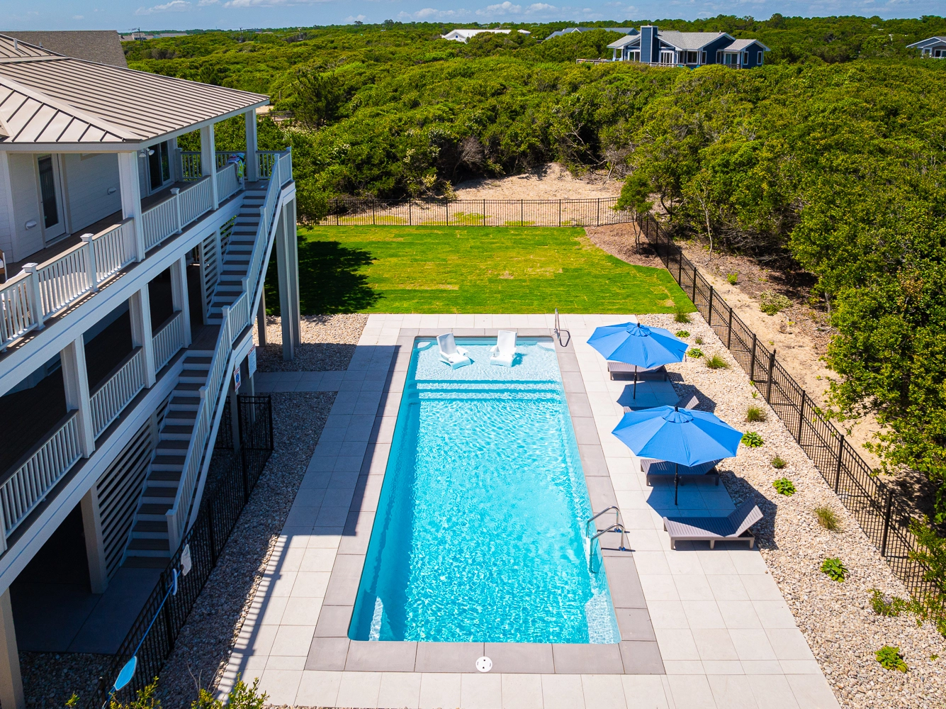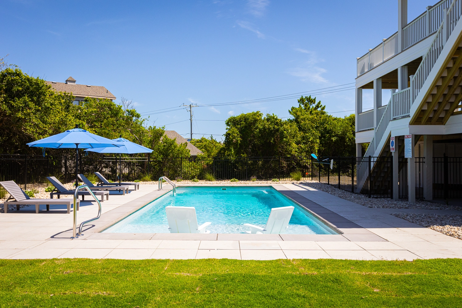 "We loved the grass option outside next to pool for games and workouts. Kitchen was very well stocked. Very close to beach access."
