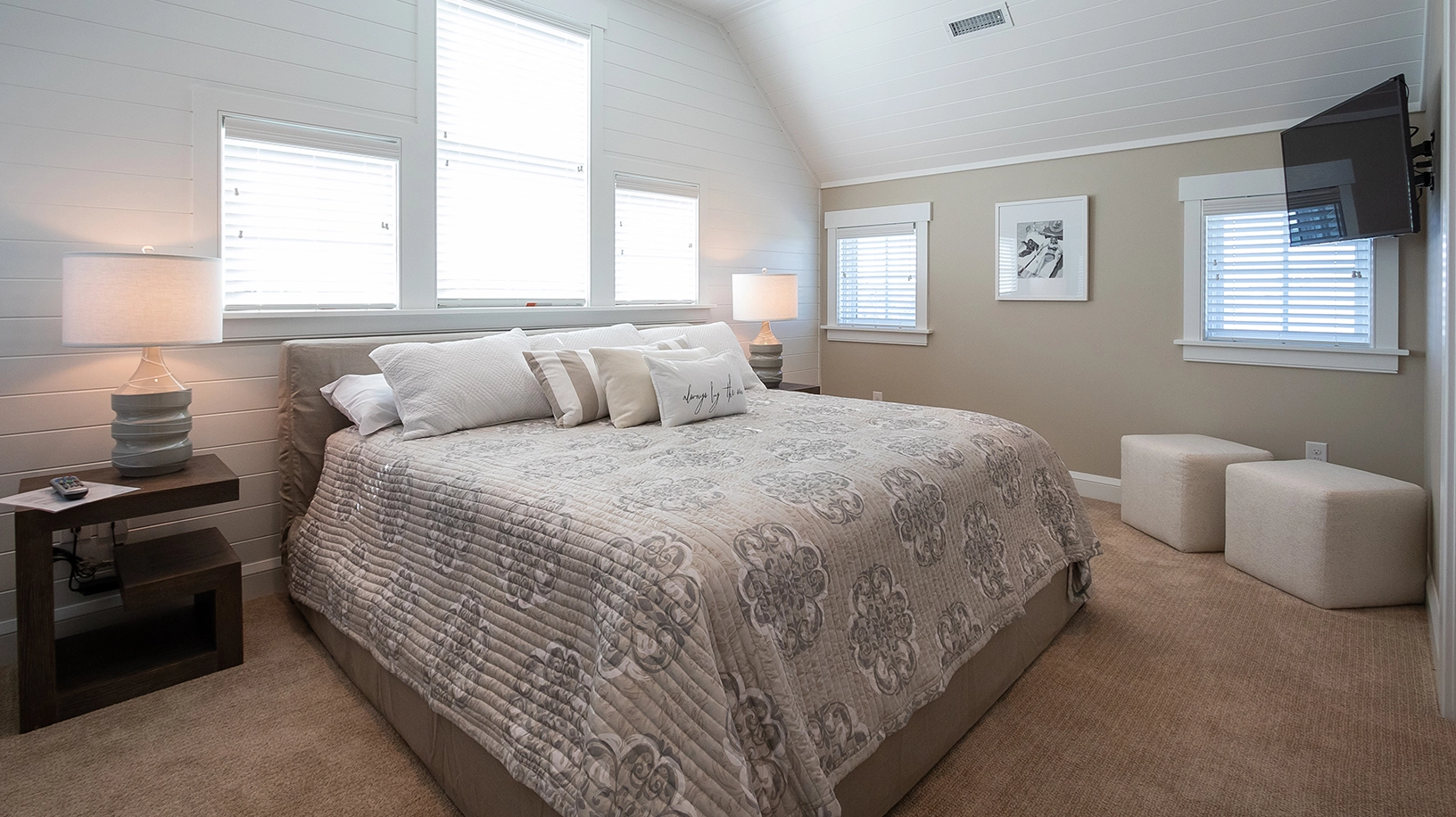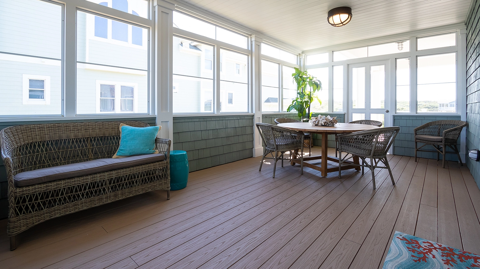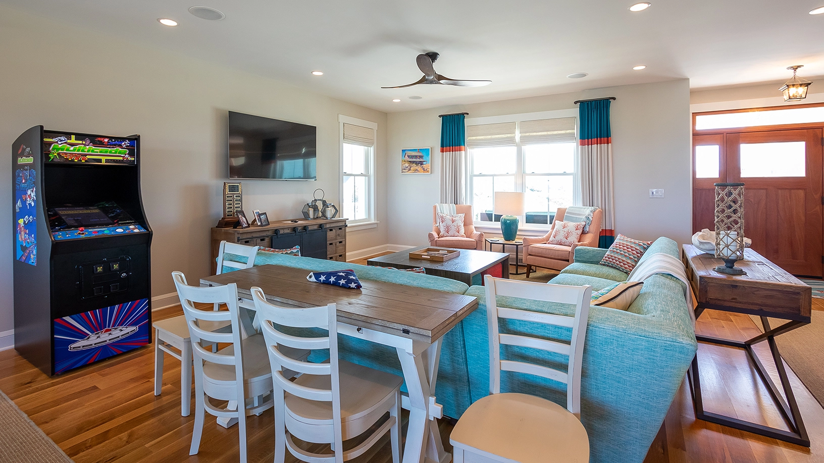 "Decor, restful color scheme, newer construction, clean, bright, many inside options on a rainy day, screened-in porches"