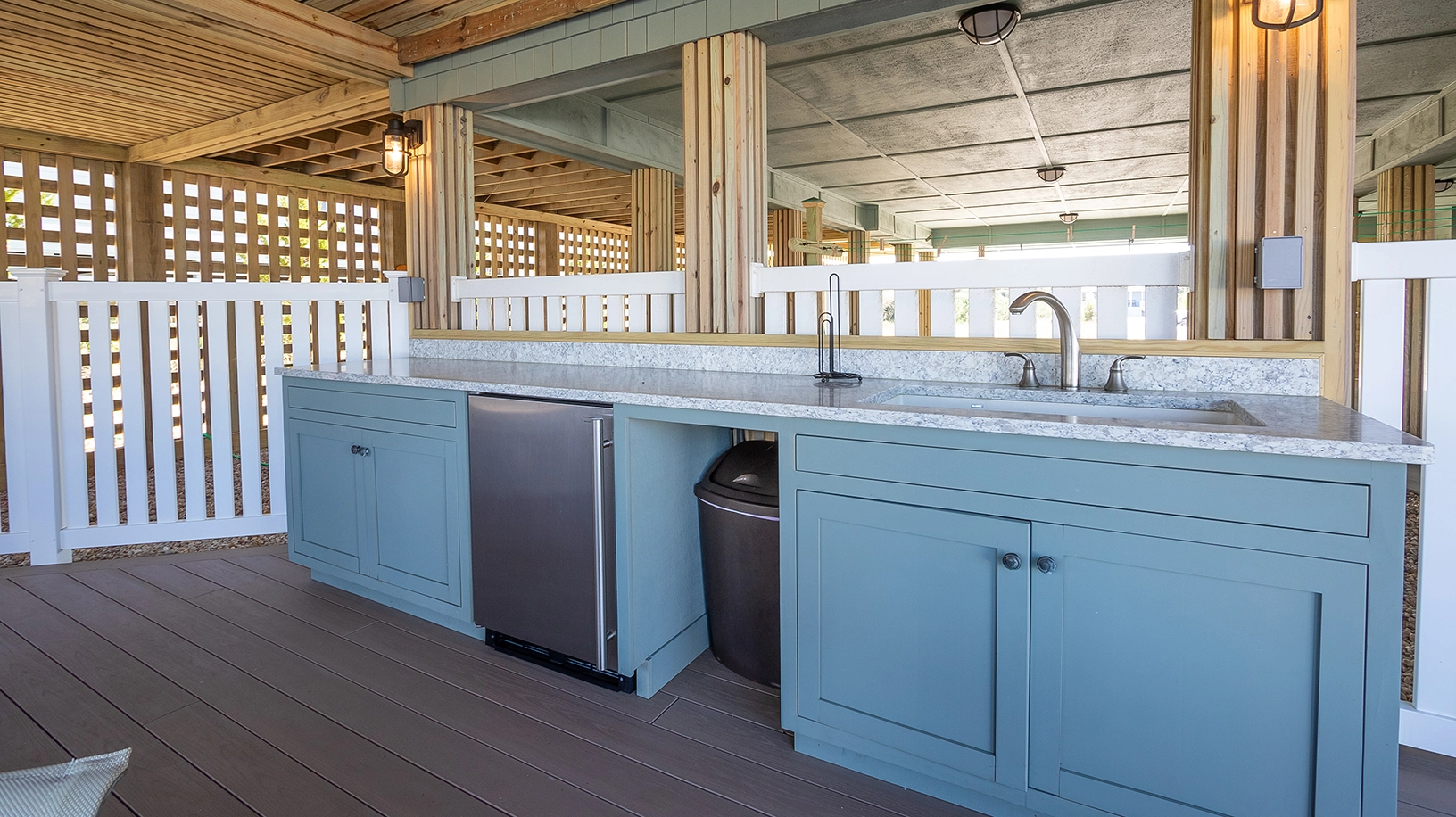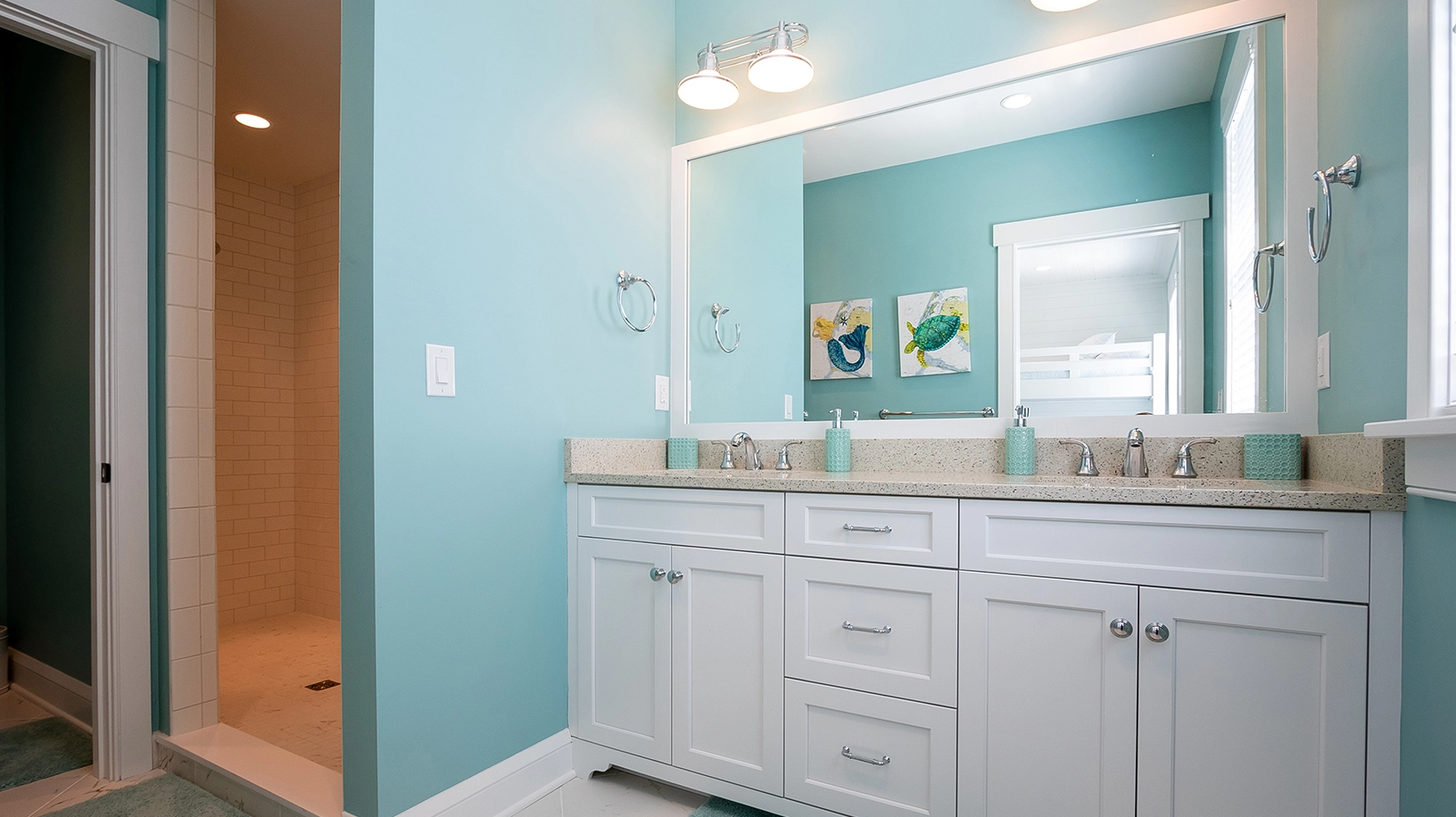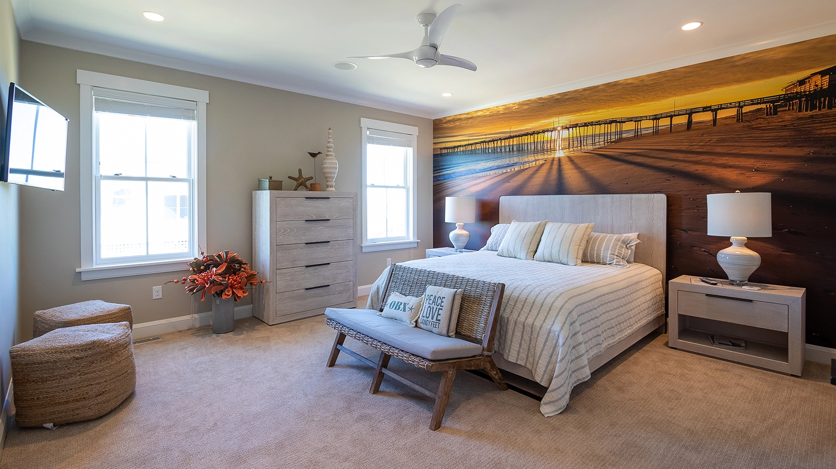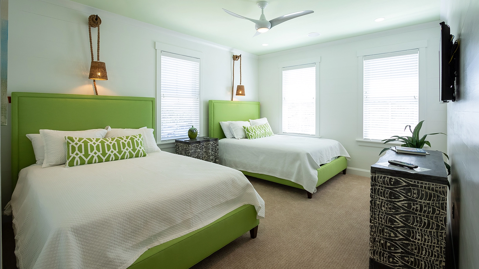 "Decor, restful color scheme, newer construction, clean, bright, many inside options on a rainy day, screened-in porches"