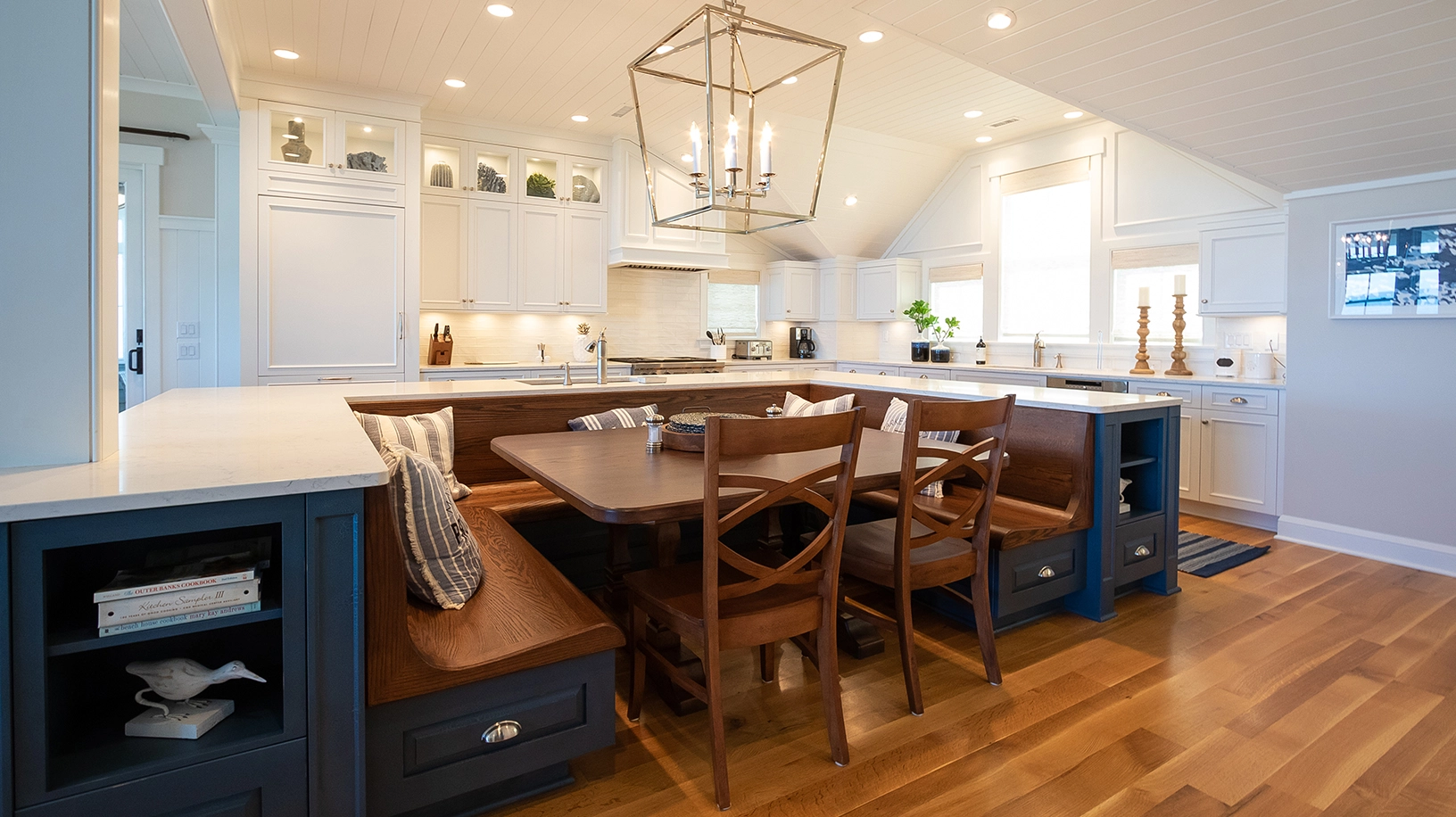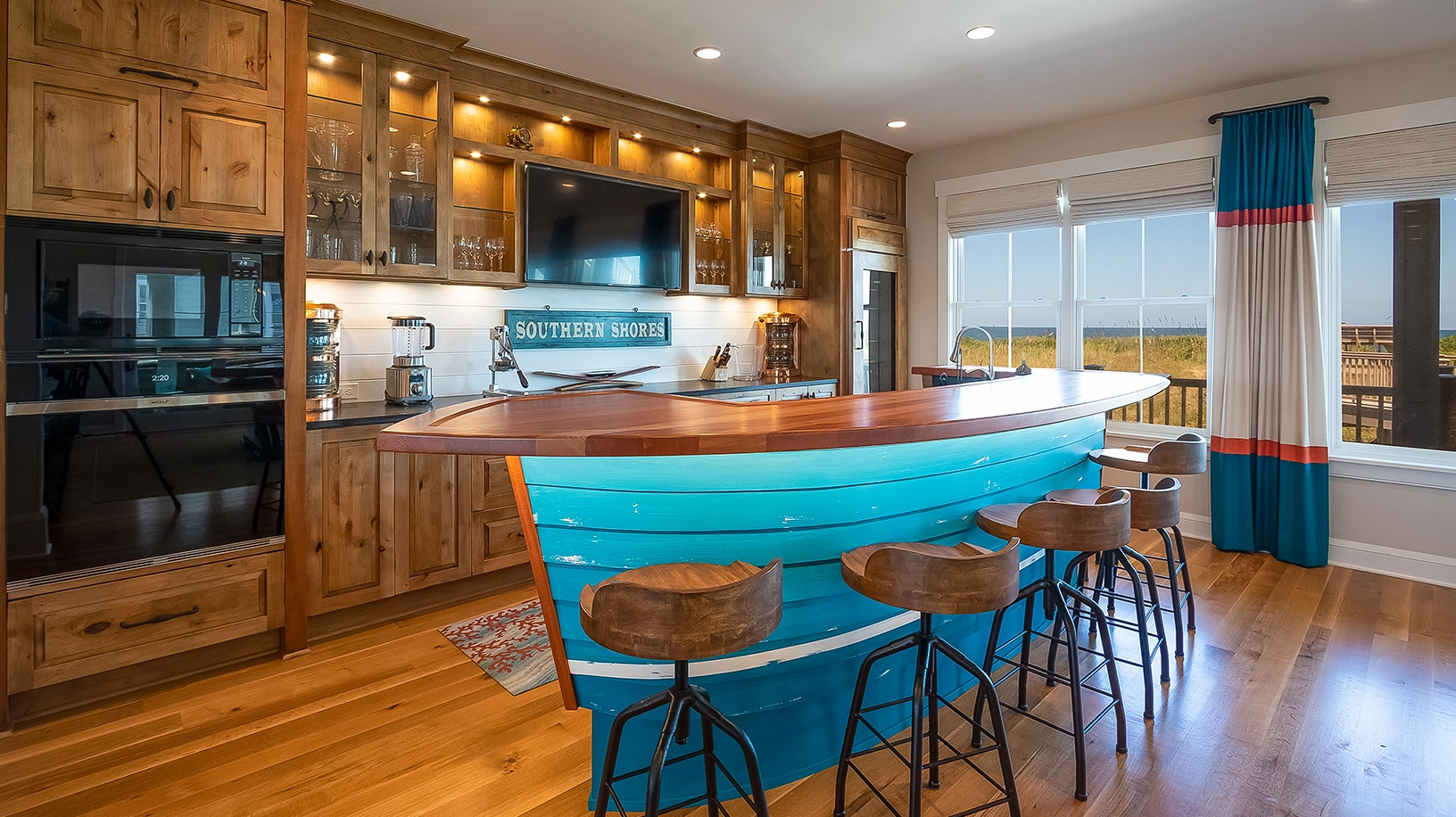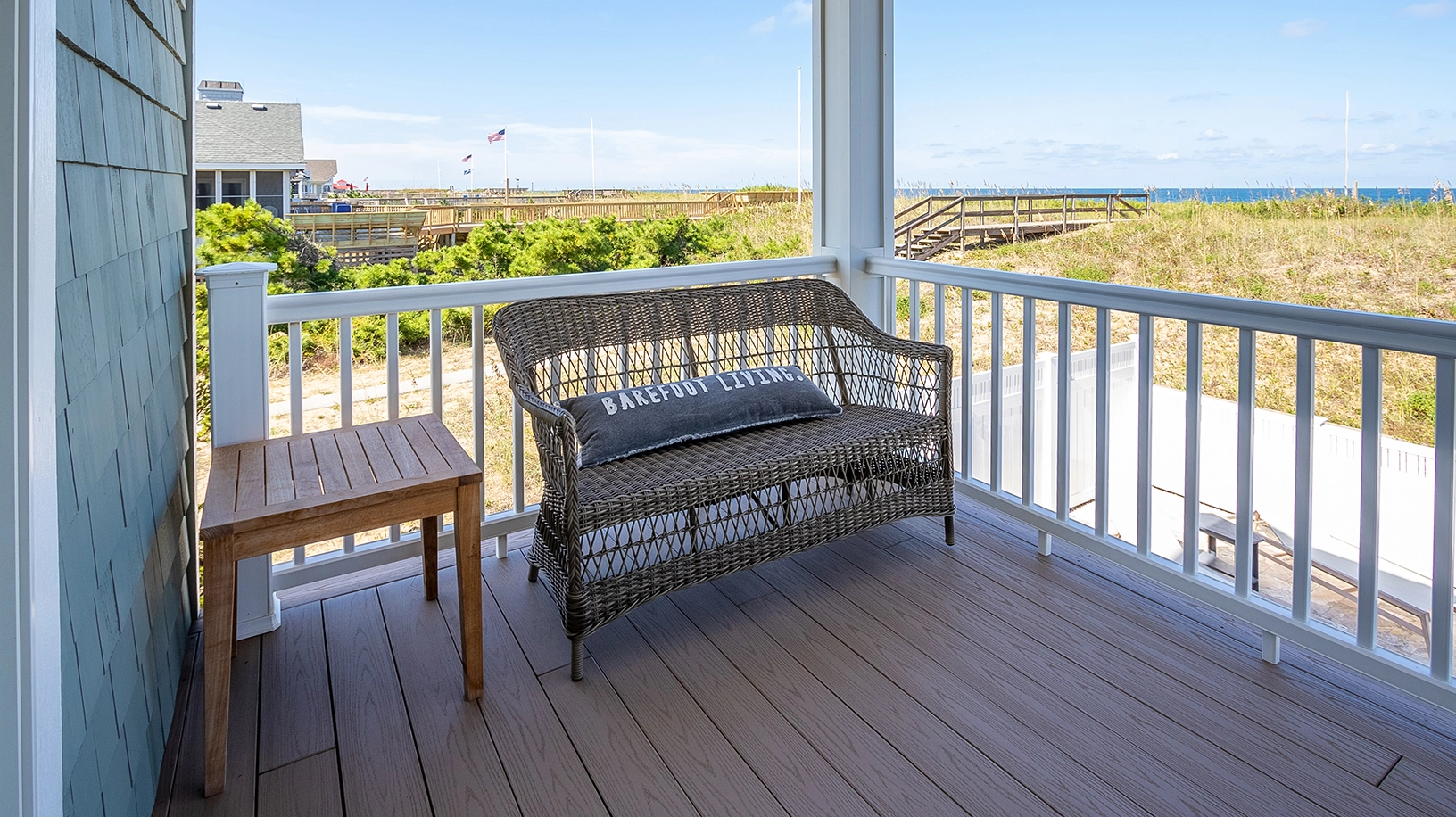 "The location. The house is a work of art and craftmanship. There's enough room for everyone to have their own space. You never feel on top of one another. The kitchen is amazing. Counterspace for everyone and everything. The outdoor spaces are great. Views of the beach wonderful. I love the screen porches and all the other nooks and crannies."