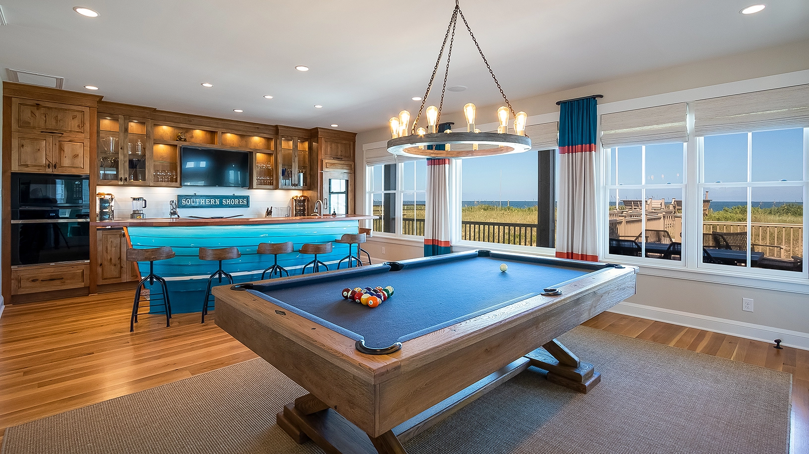 "Doppio Sagno is an absolutely gorgeous home! It has a well stocked kitchen which was so important since we were there during Covid 19 & we had all our meals in. The many entertainment areas were used with great pleasure: pool, ping pong, pool table, video games, corn hole, and of course, the beach. Twiddy & Co. we’re very easy to work with & we appreciated all the texts."