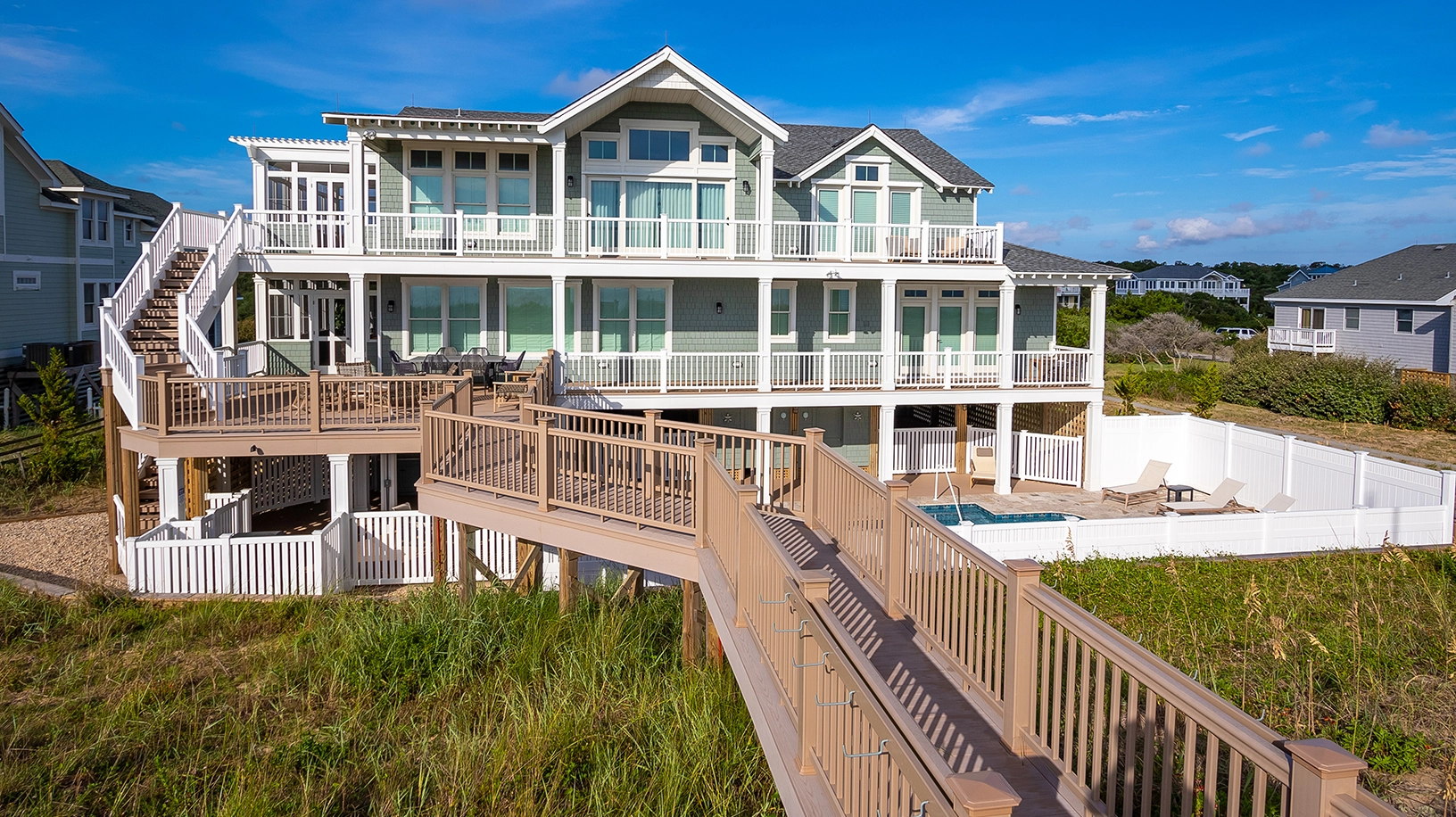 "I felt like every time we turned around or opened a kitchen drawer there was a new amenity we didn't know we needed but were grateful to find. The house was beautiful with amazing views and access to the ocean. We enjoyed morning coffee on the deck and afternoon swims in the pool. The location made it nice to drive north or south for great food and fun activities."