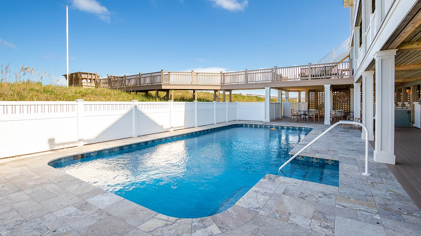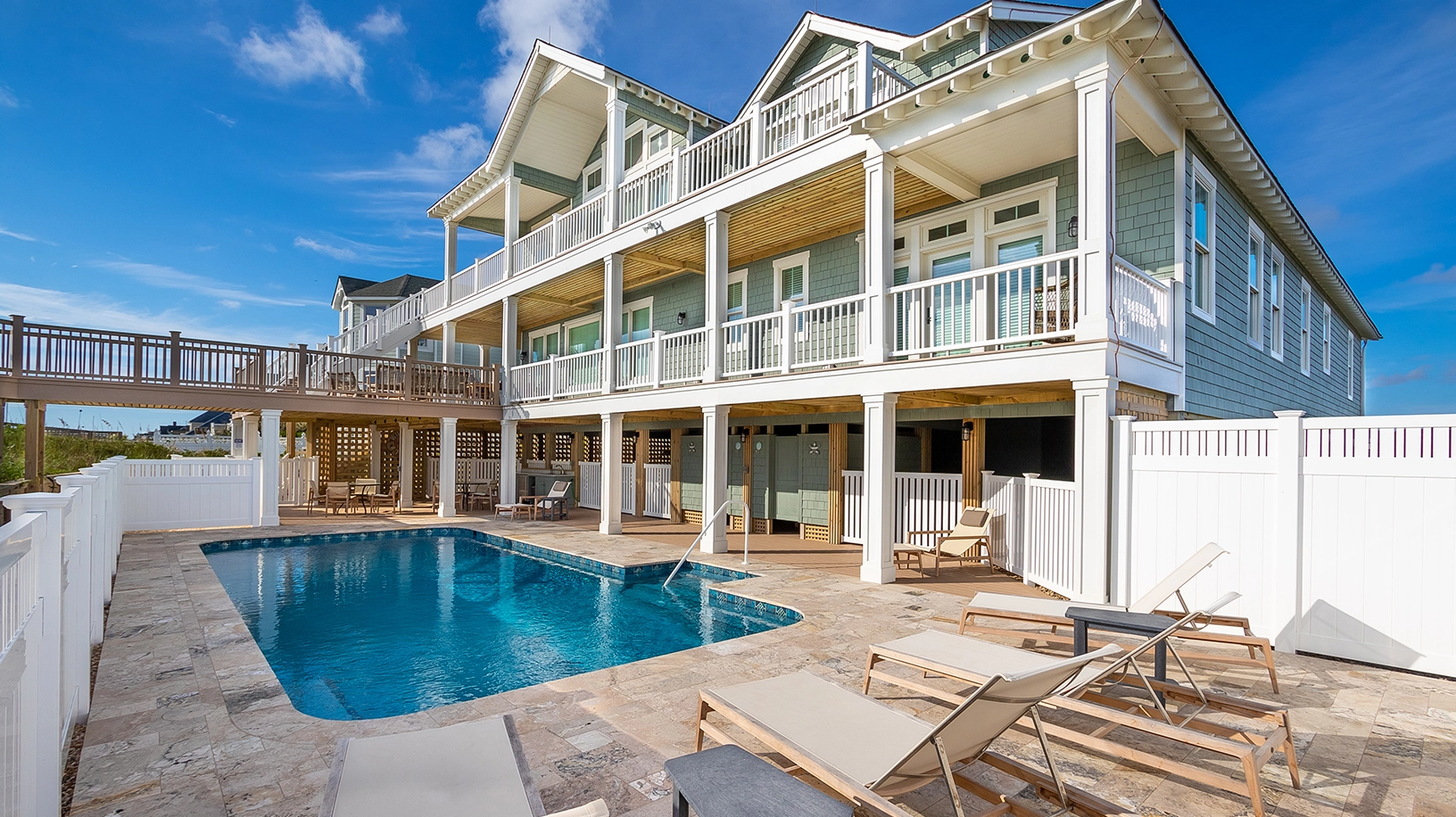 "Fantastic house, beach, and location. Best outdoor living space of all the homes we have rented in the past. Lots of seating both in the sun and shade. A shower and a bathroom right off of the pool. Two screened porches with dining tables in each. Great house layout which is nicely decorated. Well stocked kitchen."