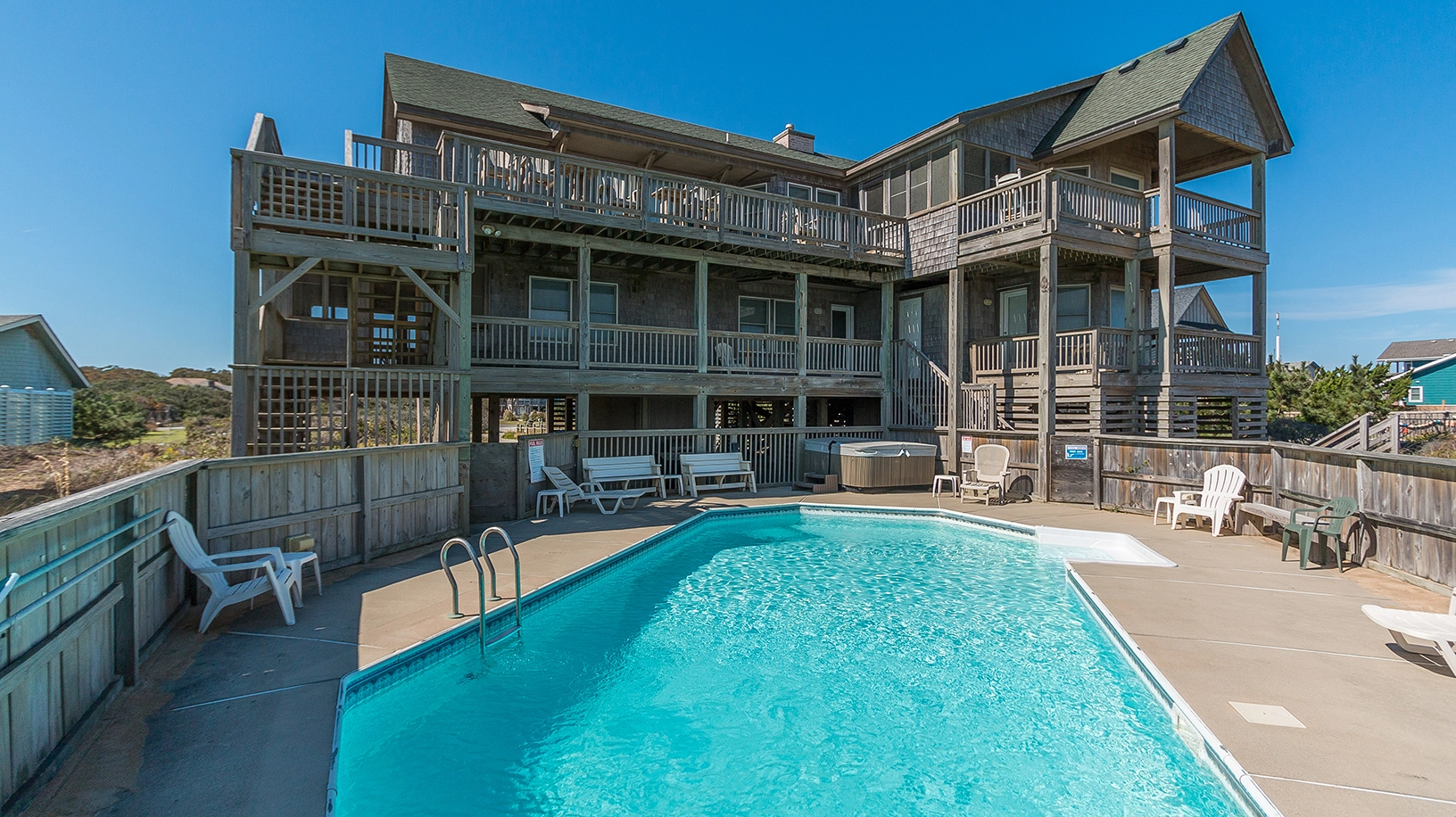 "Love the pool, hot tub, decks, ocean views, open layout, location, wi fi, spacious rooms."