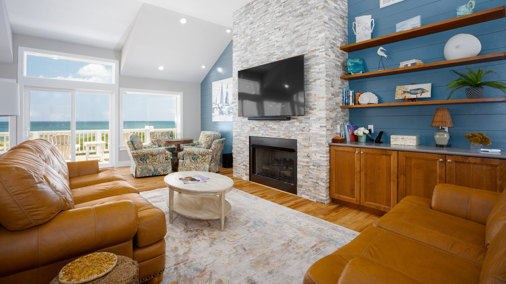 "We loved everything about “first light” but we especially loved the layout of the home - it was spacious but welcoming/cozy. Also, the owners did an amazing job with the finishes and furnishings - the home is beautiful! The location could not have been better - ocean front on a quiet street but still very close to both Duck and Kitty Hawk for all the shops and restaurants."