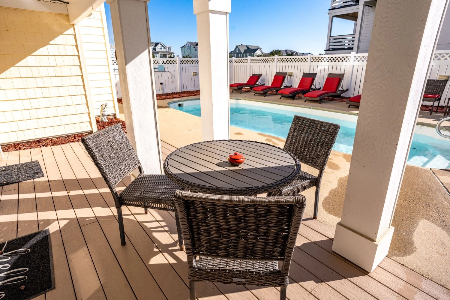 "Our family really loved it here! Great location, very clean, fully stocked kitchen made cooking meals here a breeze. Loved that it even had beach chairs available for us to use. The pool area was great and we enjoyed coffee in the mornings out on the deck watching the sunrise and played games in the evening downstairs. It just felt like home!! 10/10 recommend!! We will definitely be back!"