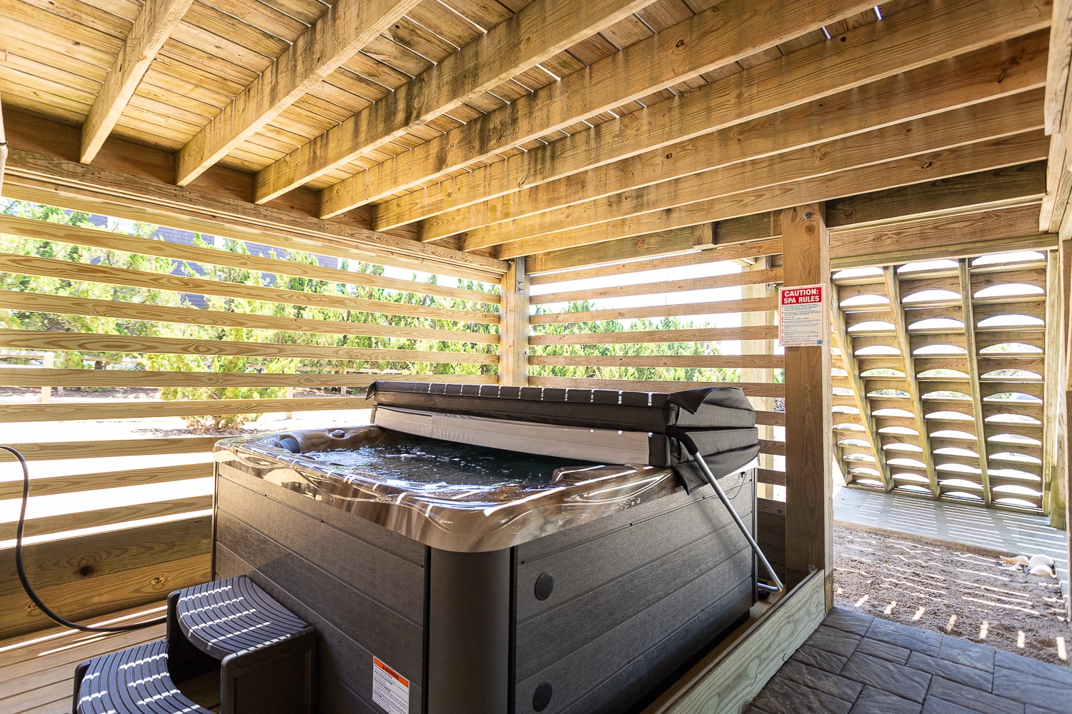 King, Standing shower, Whirlpool tub, Deck access