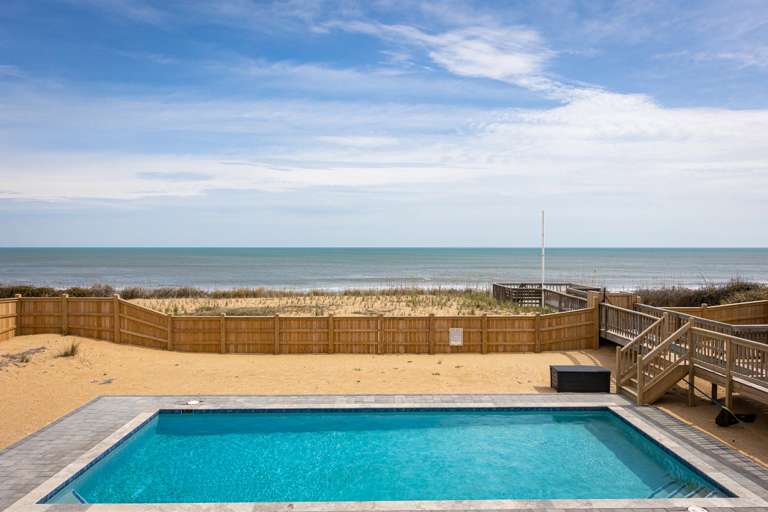 "The nearness to the ocean, the pool, the cleanliness, the well stocked kitchen, the comfortable beds, the size and layout of the home, the closeness to Duck and the shopping there"