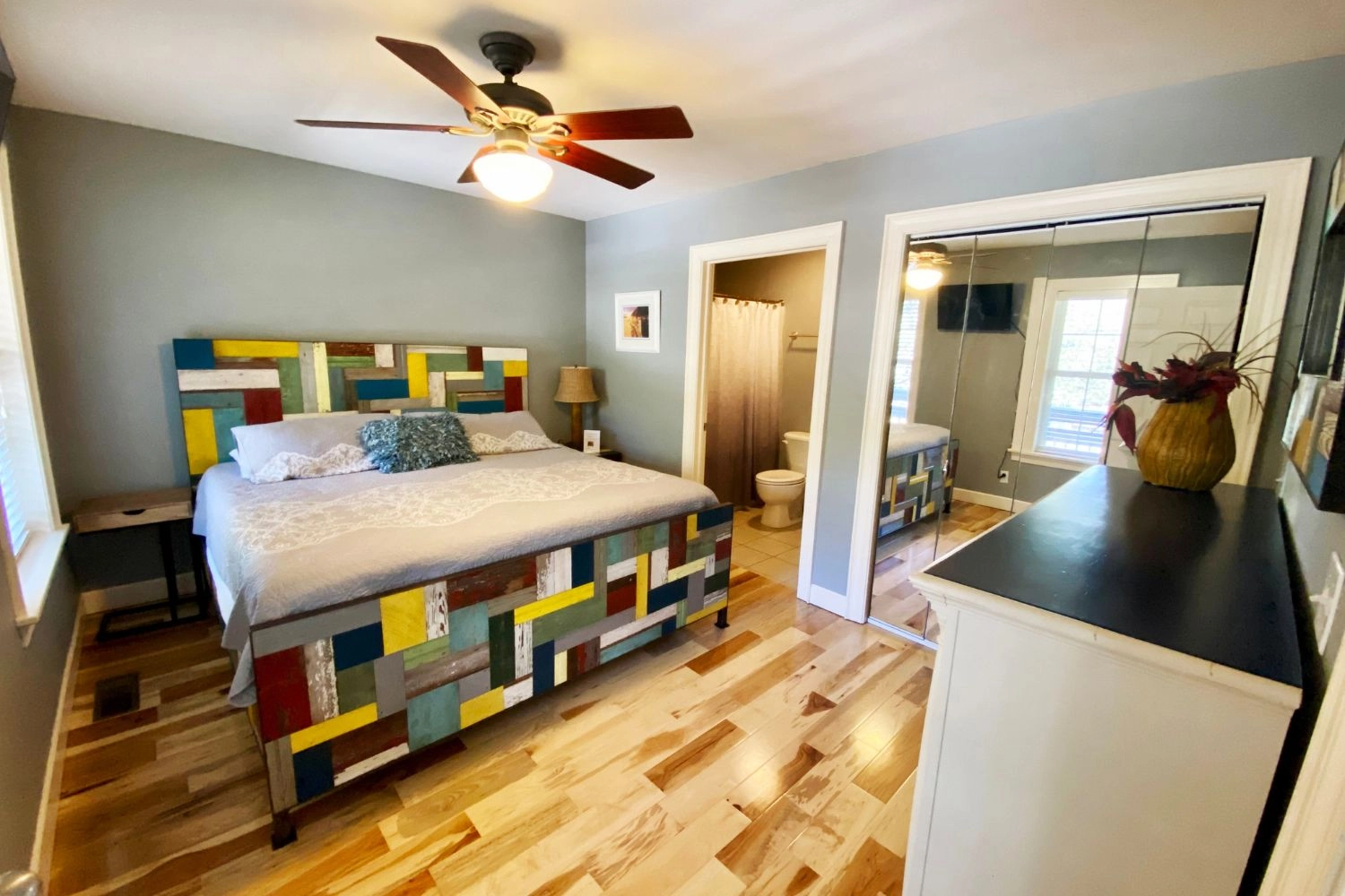 King, Standing shower, Whirlpool tub, Handicap-friendly features, Deck access