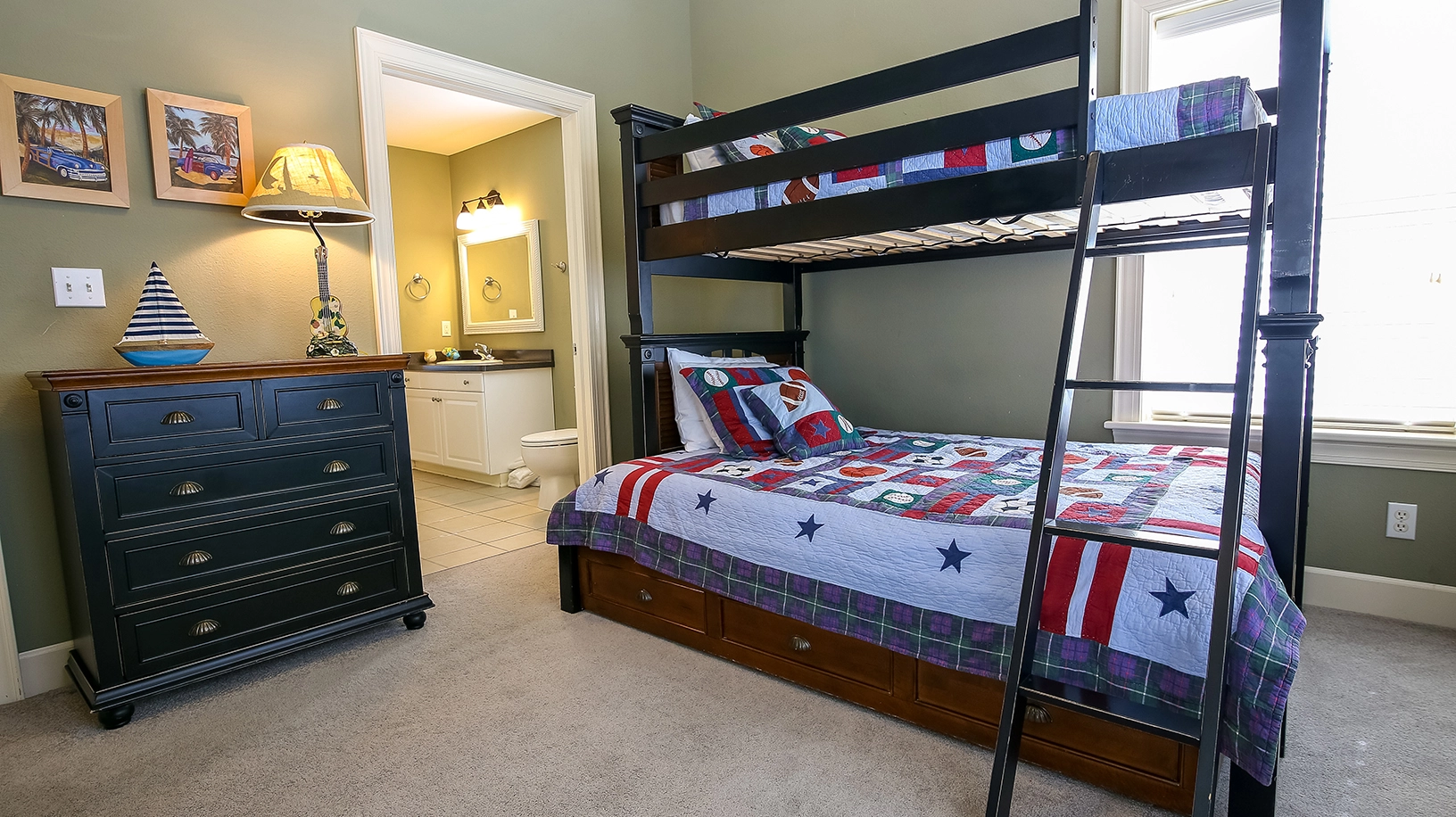 "loved the number of master bedrooms. Plenty of bathrooms for large family. Also, the second floor den/rec room was an added bonus that we used a lot. Tons of pool toys and beach chairs. All around great experience"