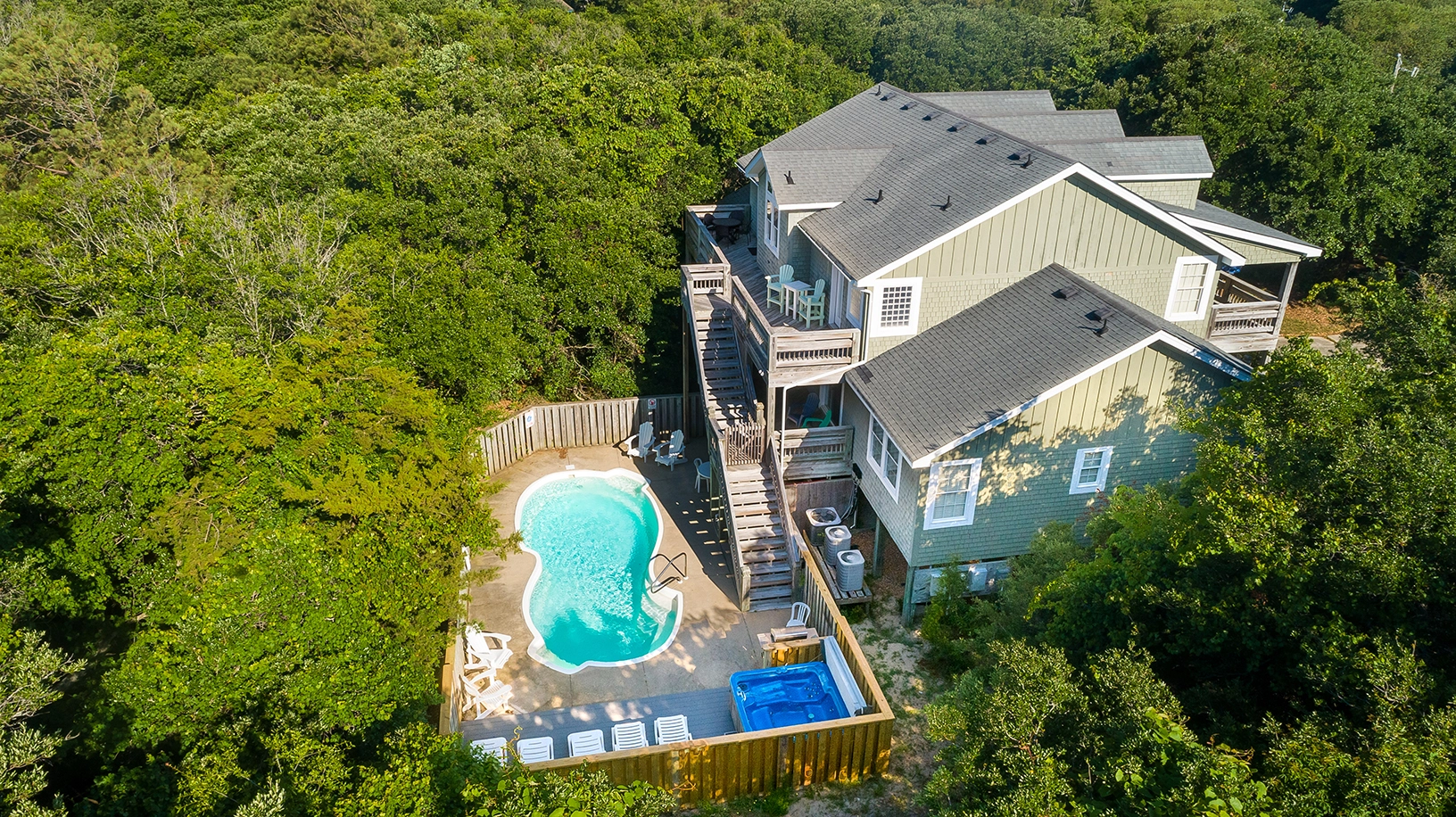"The home was spacious and the elevator was a definite plus factor! Any minor issues we had Twiddy addressed and corrected them immediately🙌 the house is centrally located on a quiet street with less than a 5 minute walk to beach. Bc of the beautiful tall ceilings the acoustics in the home really carried noise throughout the home. The private pool was an added plus; however, with the surrounding trees the debris from them made it hard to keep clean."