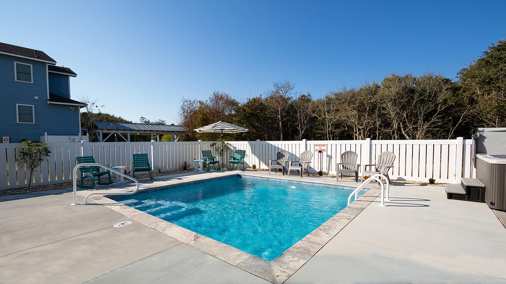 "Pure Salt is a pure dream to stay in. The owners have thought of everything in planning this vacation home. Beds are very comfortable, bathrooms are attractive, furnishings and decor are beautiful, kitchen is well stocked, pool area is a treat with tv, refrigerator, nice outdoor shower and great seating with pool and hot tub. Twiddy has kept this relatively new house sparkling clean. It is one of the loveliest and cleanest pet homes we have experienced. With access to the beach right across the street, we highly recommend this house for fun in the sun and thank the owners for sharing it with us this year....we'll be back!!"