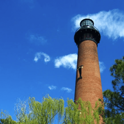 Located right in the heart of Historic Corolla Village, this red-brick lighthouse provides climbers with a panoramic view from the sound to the ocean, lending a spectacular perspective of the delicate barrier islands that make up the Outer Banks.