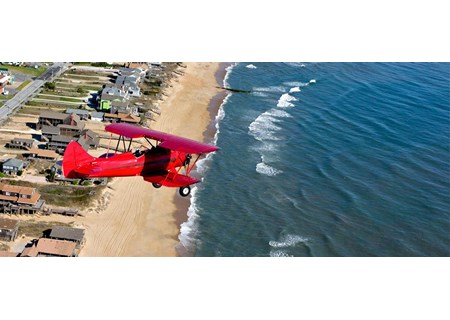 Soar over the Outer Banks in a 1942 open-cockpit biplane or in a Cessna 172 for a bird's-eye view of dolphins, sea turtles, shipwrecks, the Wright Brothers' Monument, Bodie Island Lighthouse, and more.
